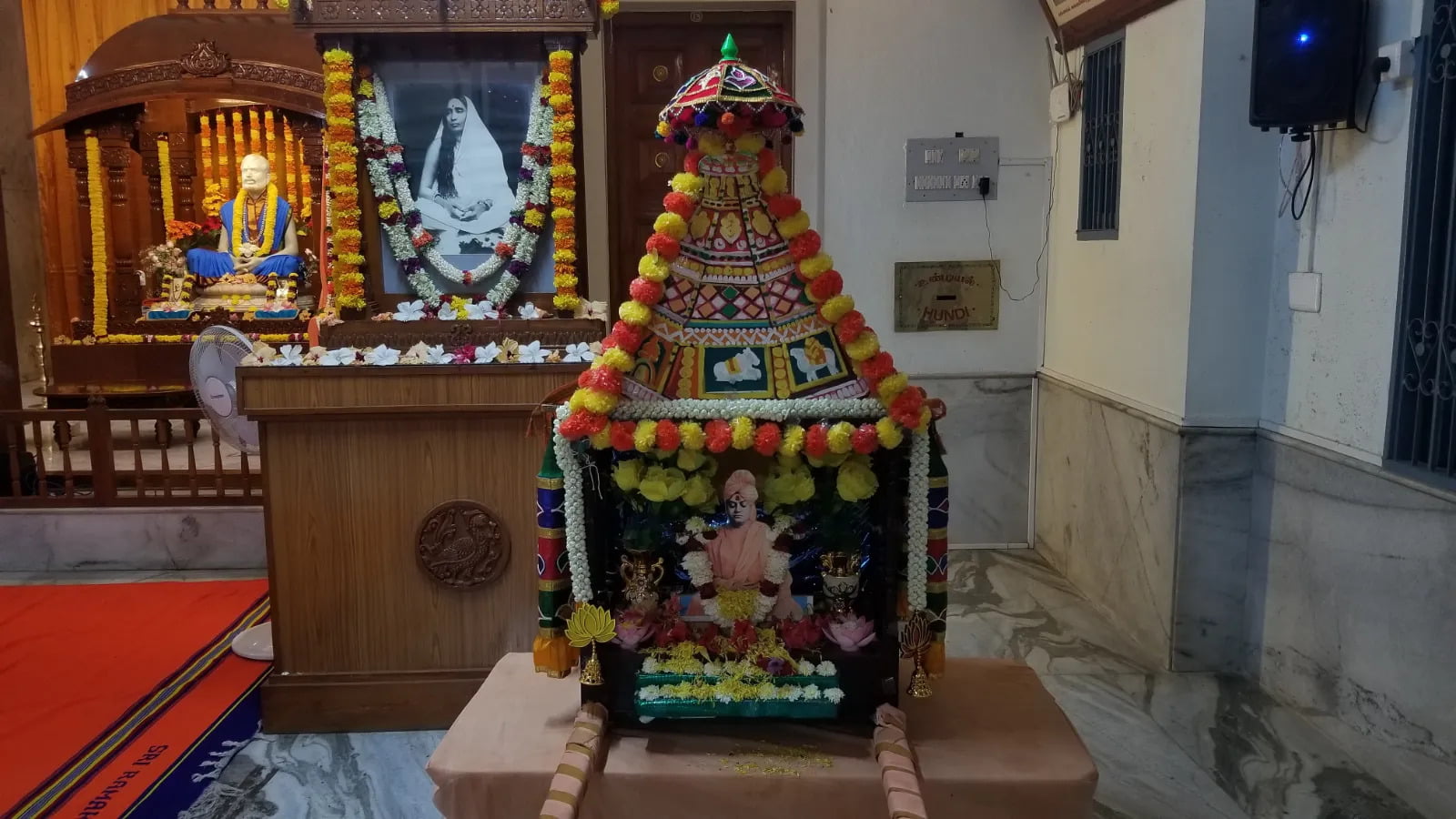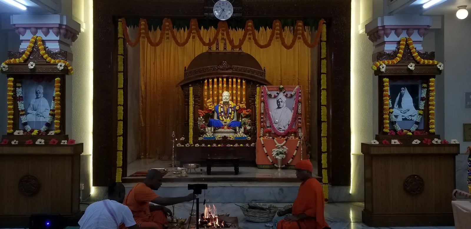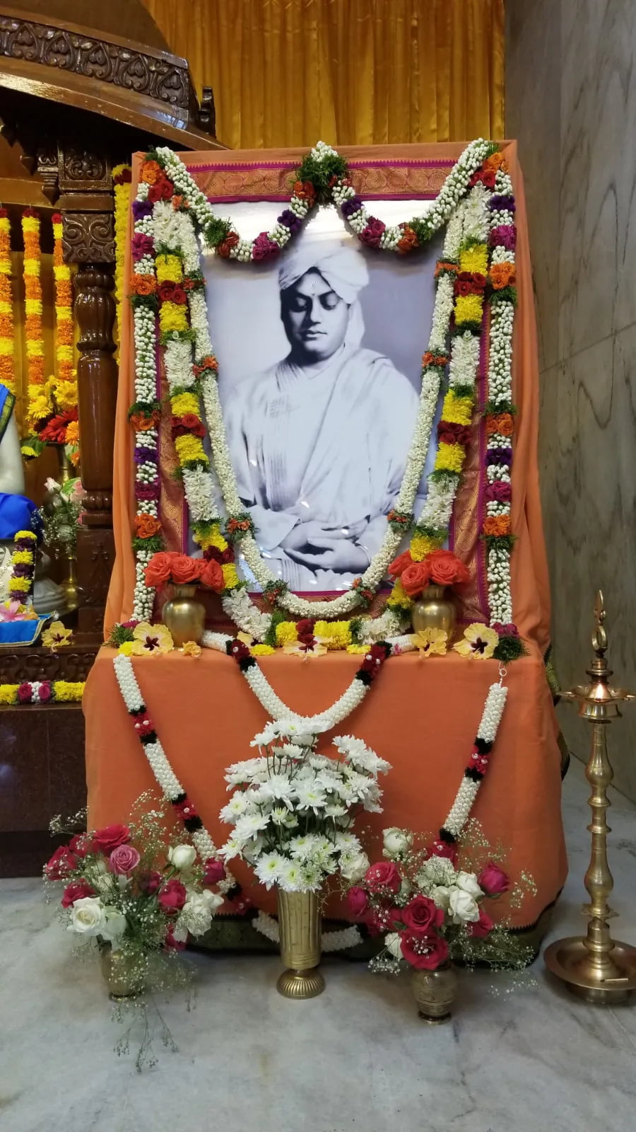 A special puja started at 6:30 am, followed by a Homa at 10:15 am. Monastics chanted Sri Rudram from 8:00 am to 8:20 am, followed by Special Bhajans until 10:30 am. Students and teachers carried Swami Vivekananda's portrait in a procession, singing Namavalis, from the school to the temple prayer hall and performed Bhajans at the temple.
