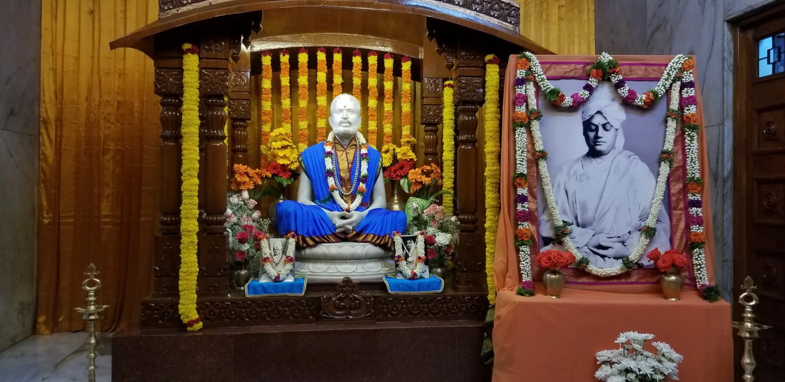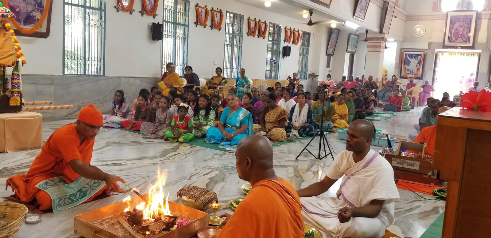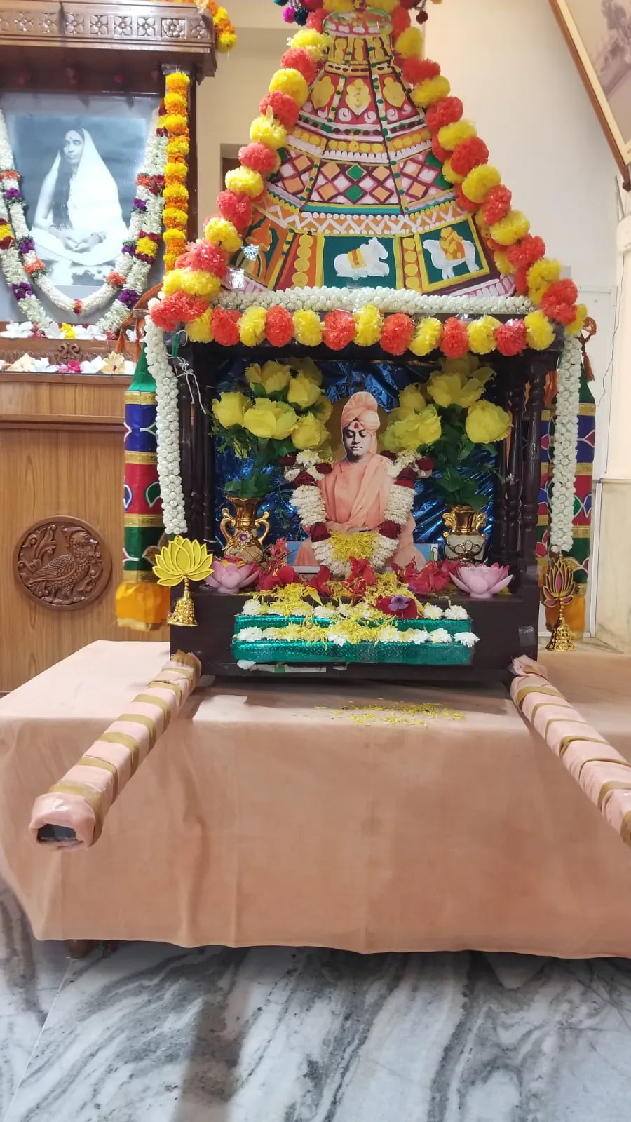A special puja started at 6:30 am, followed by a Homa at 10:15 am. Monastics chanted Sri Rudram from 8:00 am to 8:20 am, followed by Special Bhajans until 10:30 am. Students and teachers carried Swami Vivekananda's portrait in a procession, singing Namavalis, from the school to the temple prayer hall and performed Bhajans at the temple.