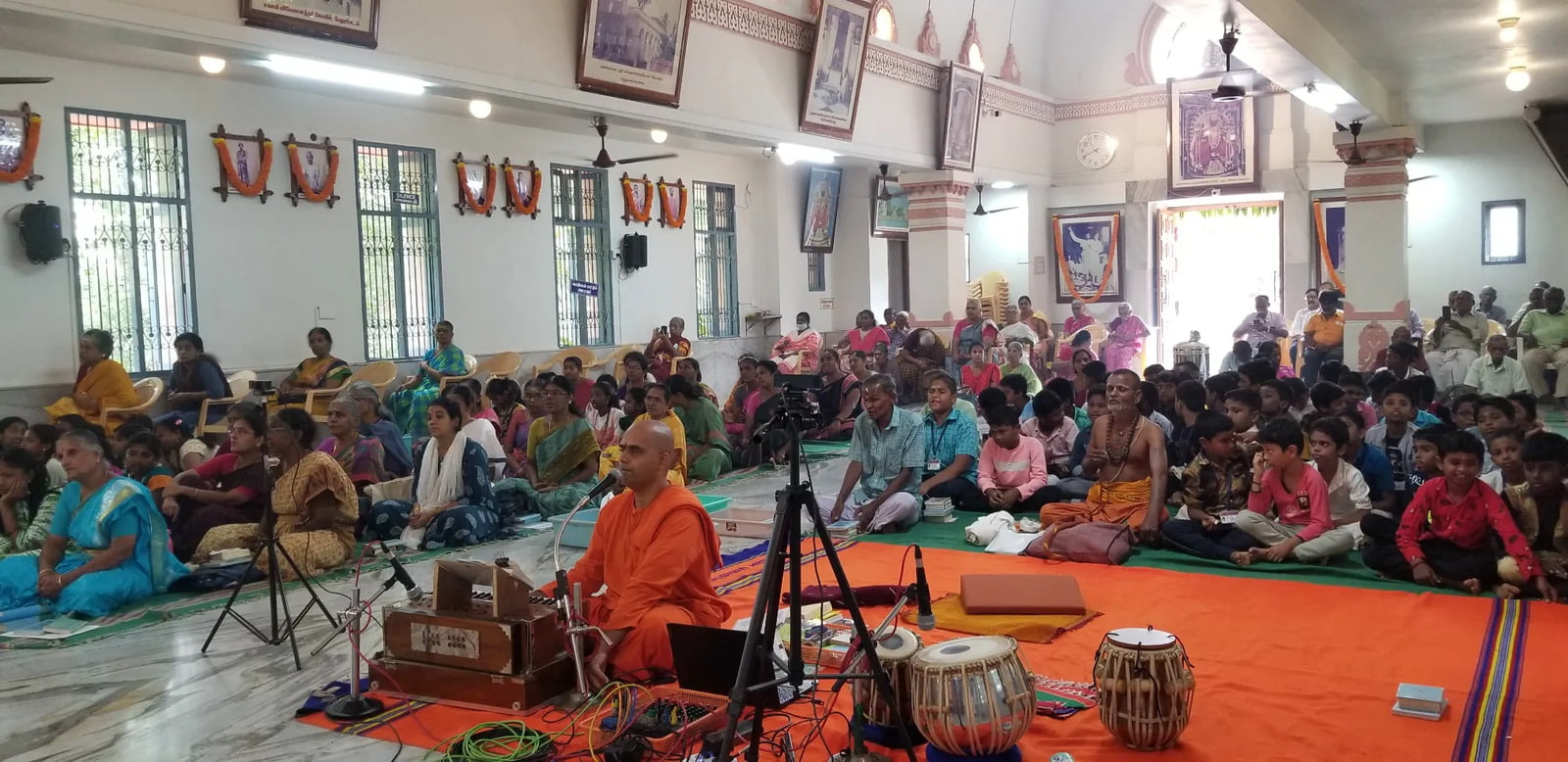 As evening approached, the divine ambiance persisted with special bhajans on Swami Vivekananda, echoing through the premises until 8:00 pm.
