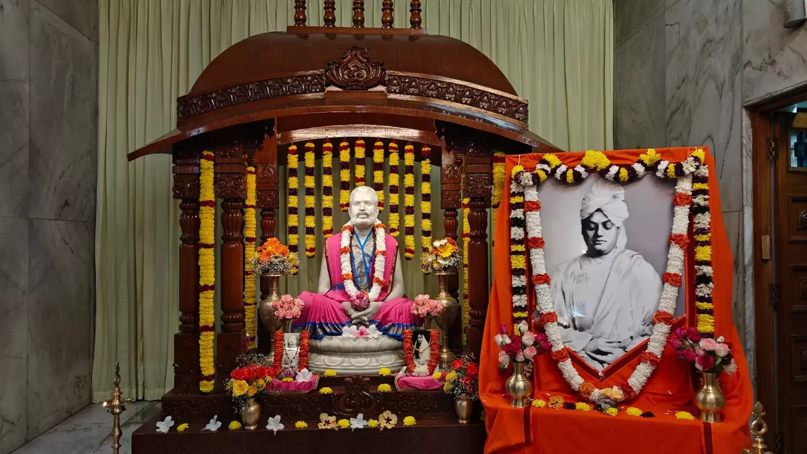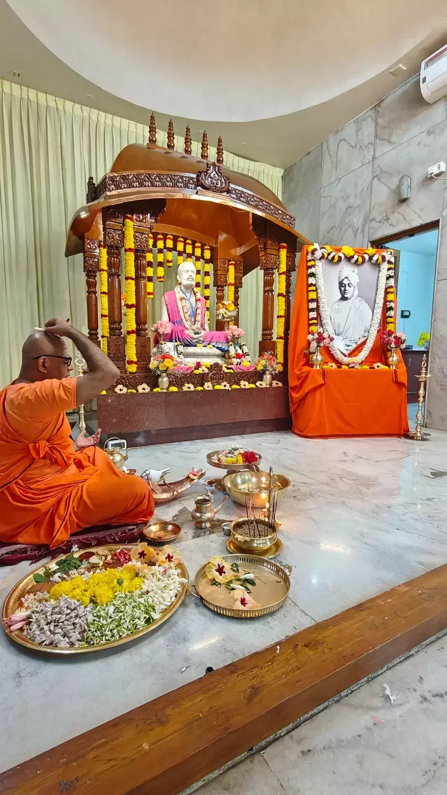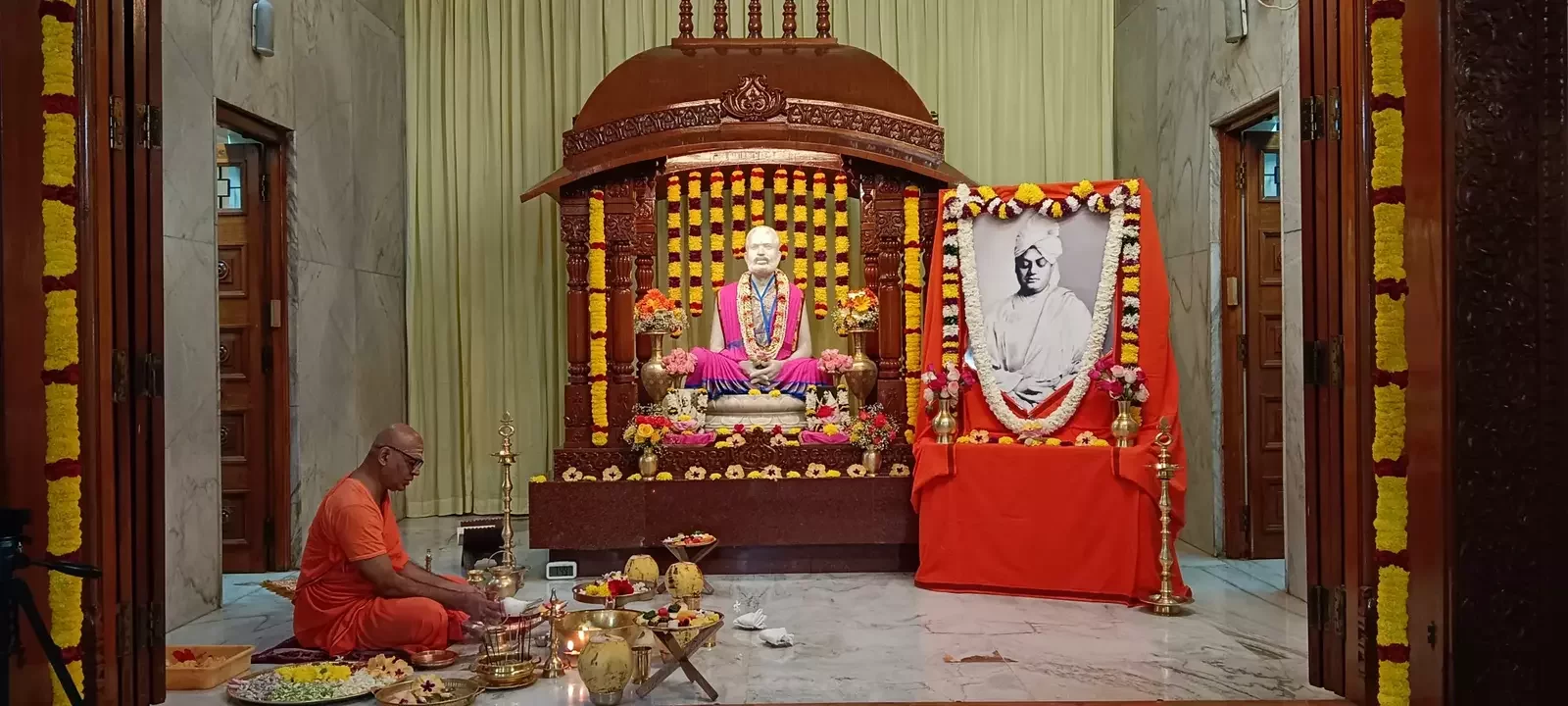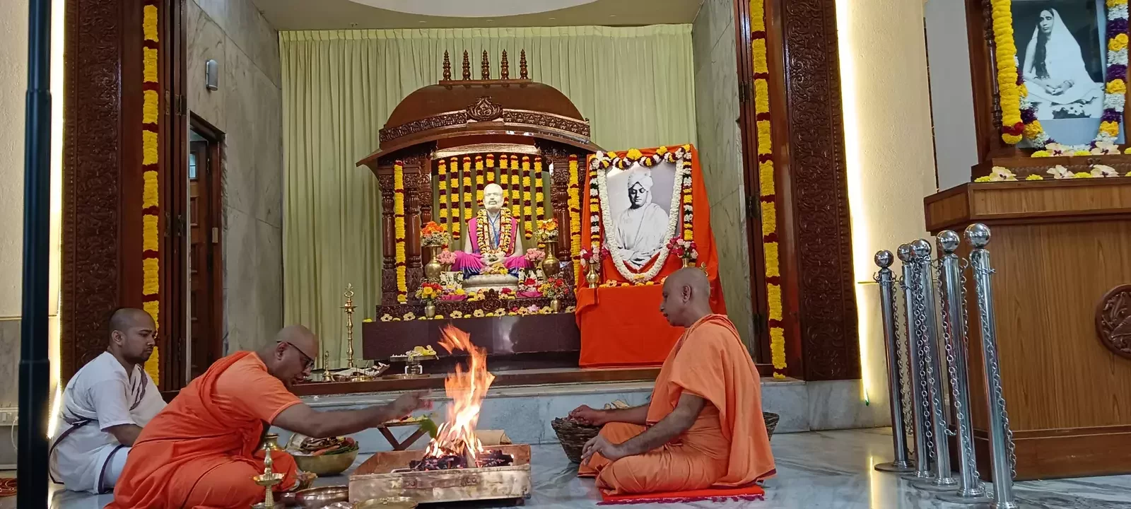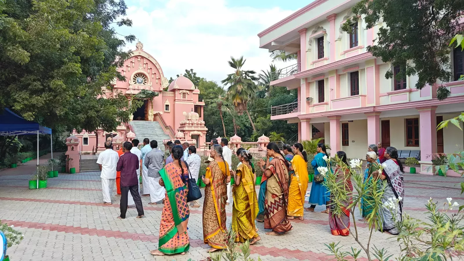 From 6:30 AM to 7:30 AM, devotees participated in Temple Pradakshina (circumambulation) while singing Namavalis and Bhajans. A special puja to Sri Ramakrishna commenced at 7:00 AM.