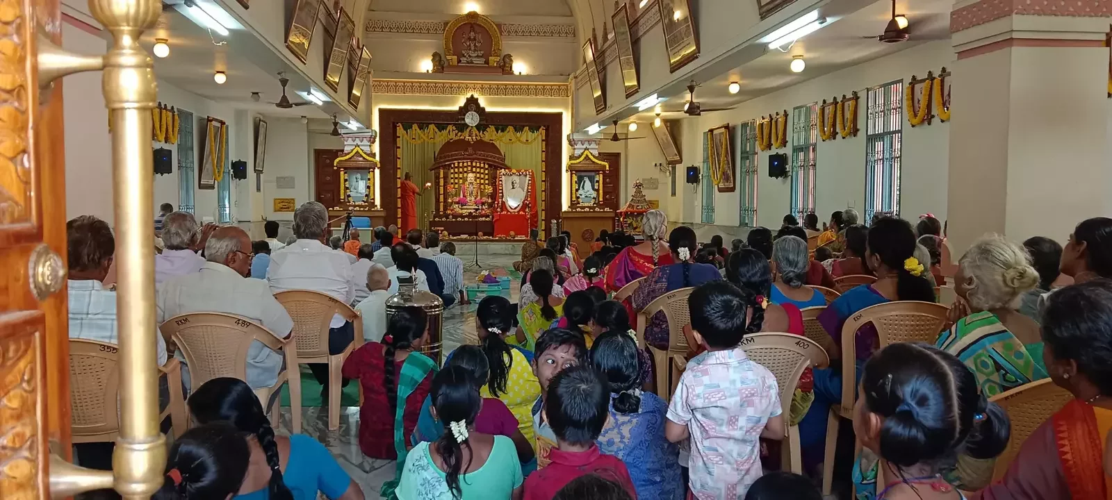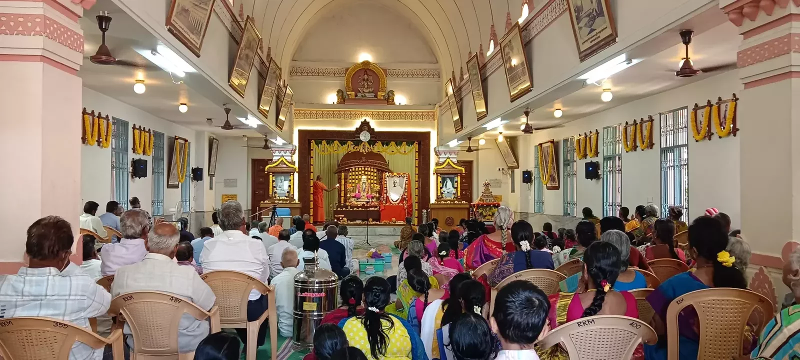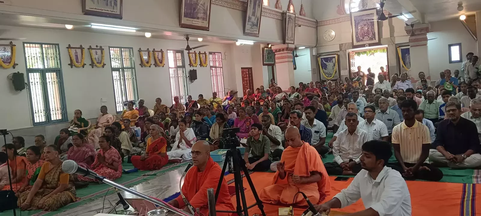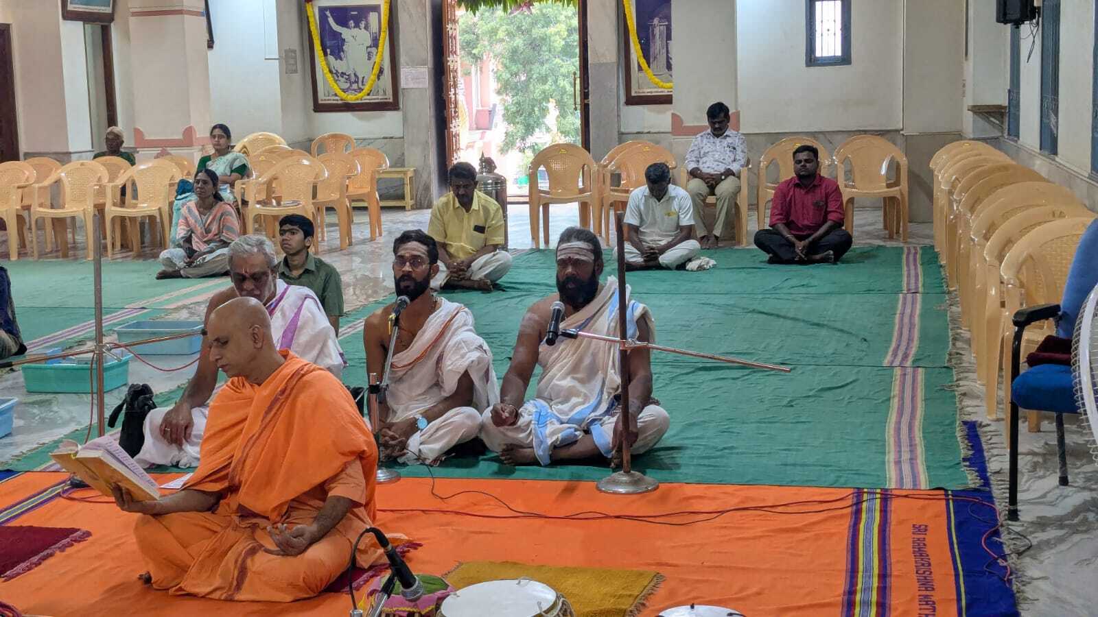 A significant spiritual highlight occurred between 8:00 AM and 9:00 AM, when three Vedic scholars performed Sri Rudram and other powerful Vedic chants, filling the temple with divine vibrations. This was followed by a long session of devotional Bhajans until 10:30 AM.