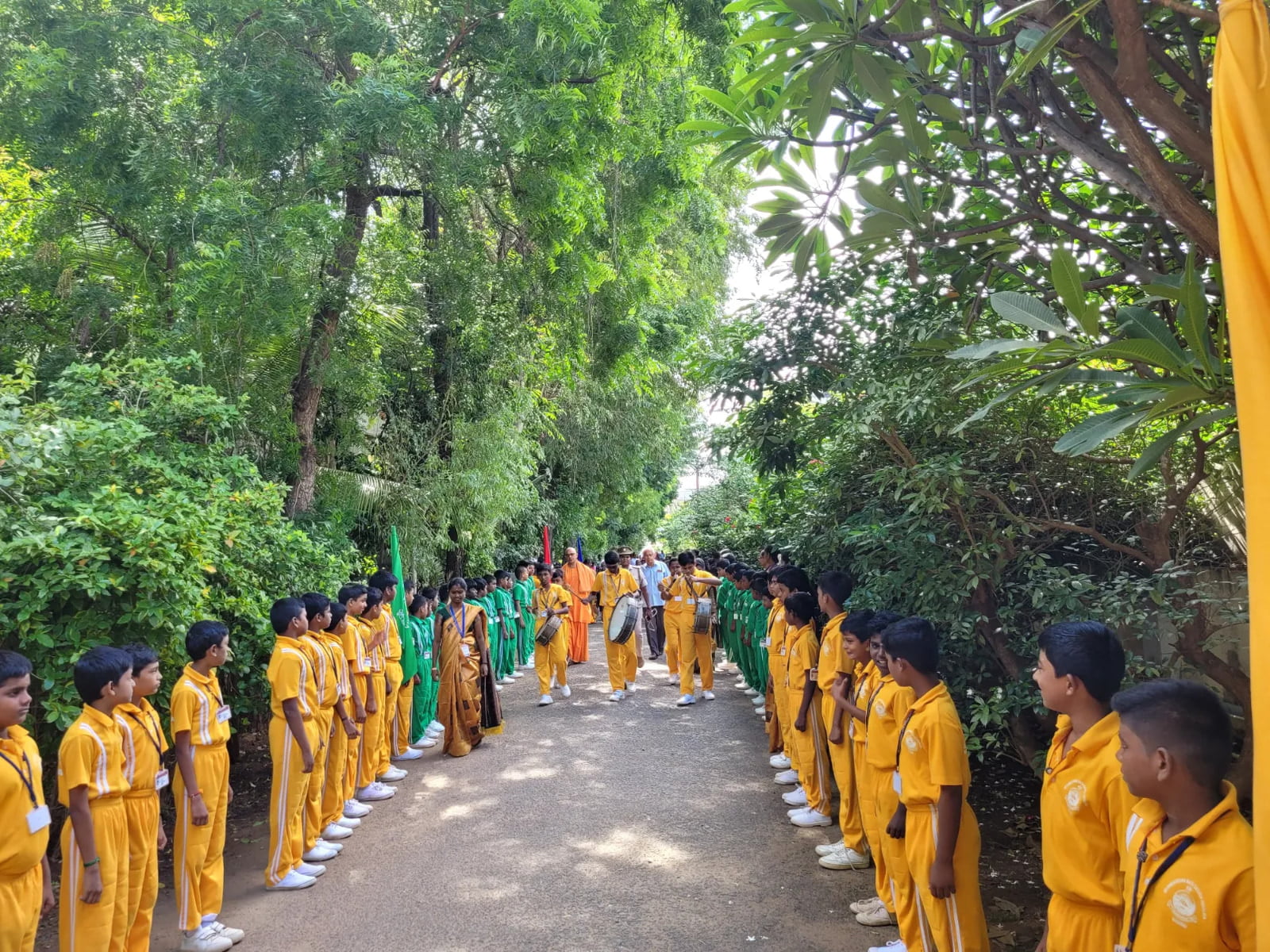 The celebration began with devotional singing, followed by flag hoisting. The students then showcased a disciplined march-past and took an oath, marking the official start of the event. Swami Nityadipananda delivered the Guest of Honour address, followed by an inspiring speech by Chief Guest Smt. M. Regina.