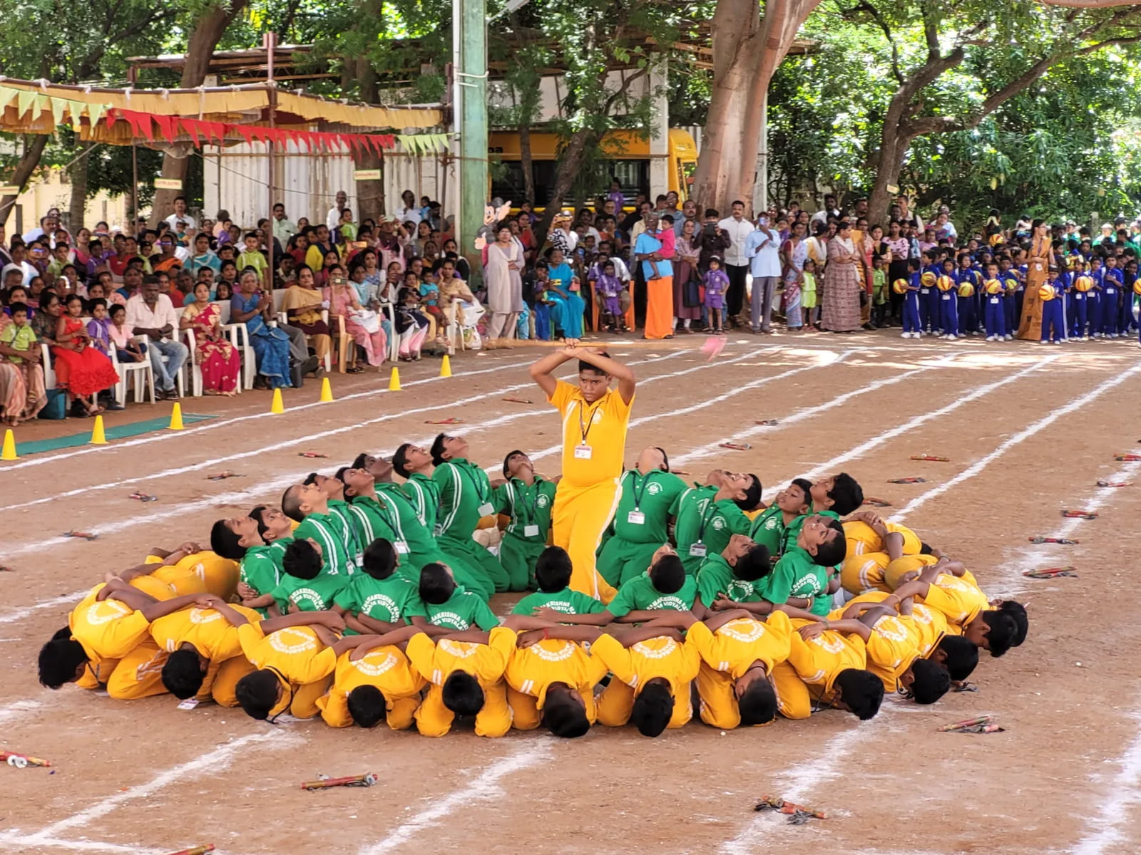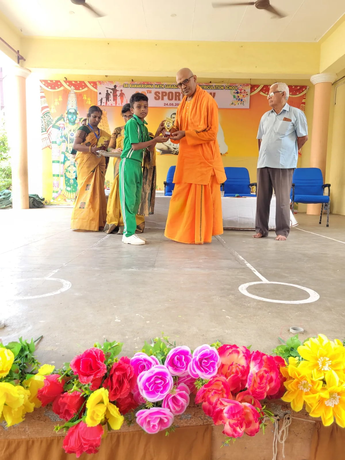 Ramakrishna Math Sarada Vidyalaya celebrated its 40th Annual Sports Day on 24th August 2024 with great enthusiasm. The event began at 9:30 am and concluded at 12:30 pm. The Chief Guest, Smt. M. Regina, Inspector of Police, Southgate Crime Police Station, along with the Guest of Honour, Swami Nityadipananda, were warmly welcomed by the students with a lively performance from the western band.