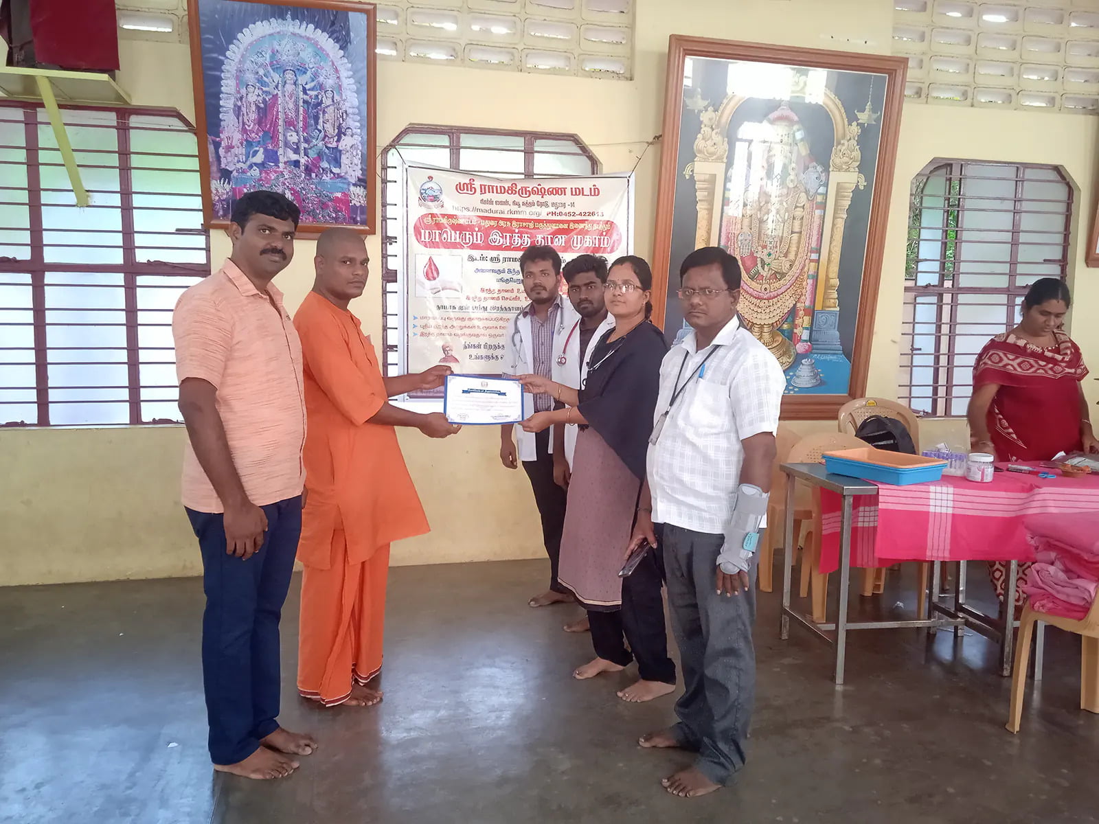 Sri Ramakrishna Math and Zoho Corporation, Madurai jointly organised a blood donation camp on 6th November, 2022. in the premises of Ramakrishna Math Madurai. The program was arranged with the help of Government Rajaji Hospital Madurai,