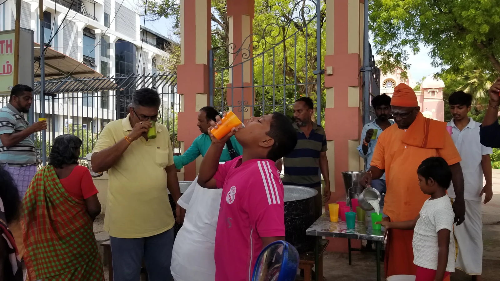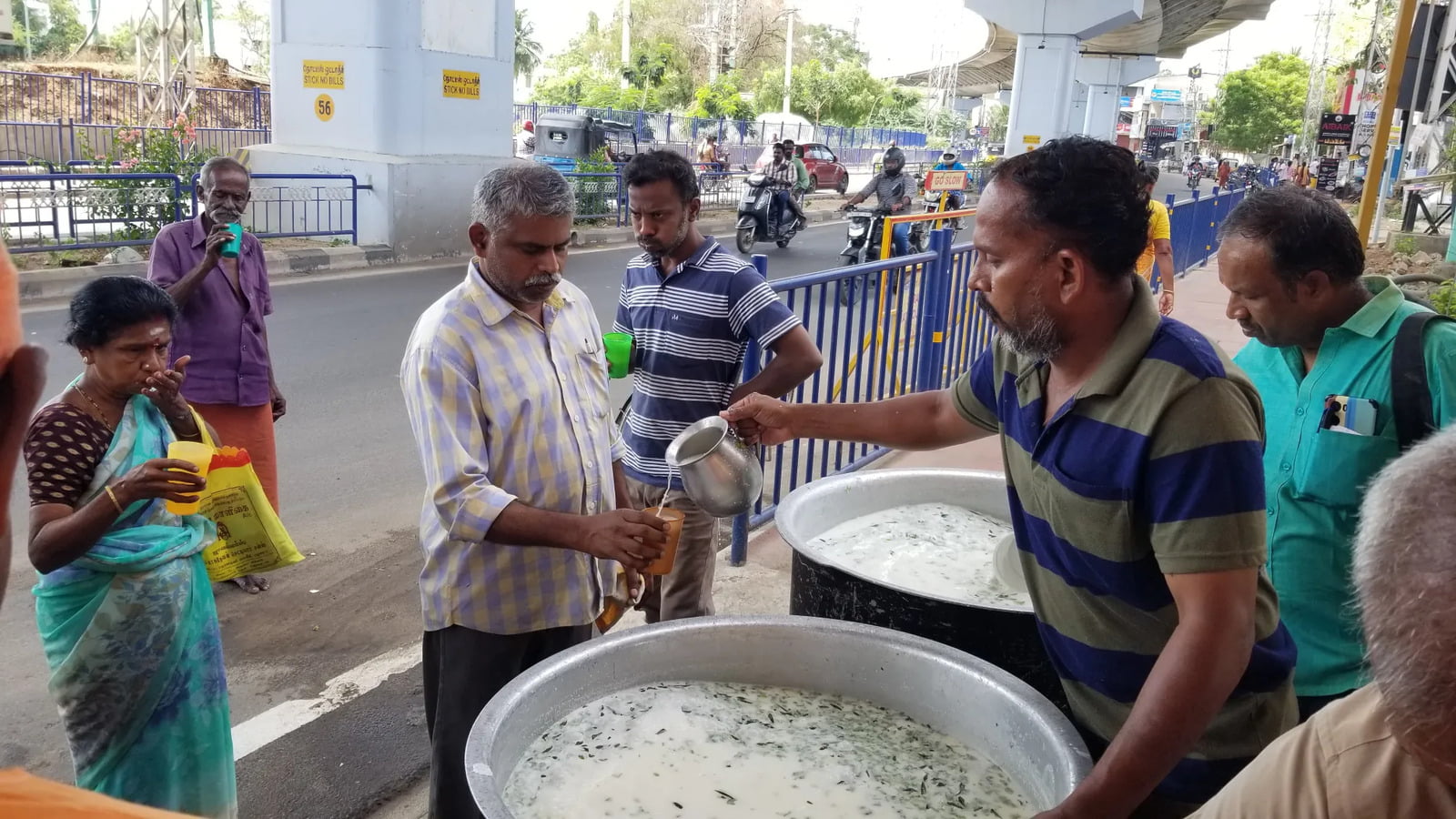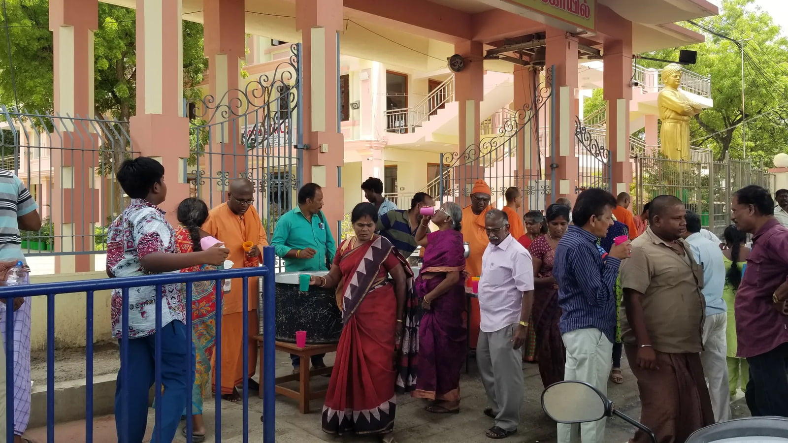 During the Azhagar procession passing through the Reserve Line area (near Madurai Math), we distributed 800 liters of refreshing buttermilk to around 3000 people for two days, 22nd and 26th April 2024, in front of our Math premises.