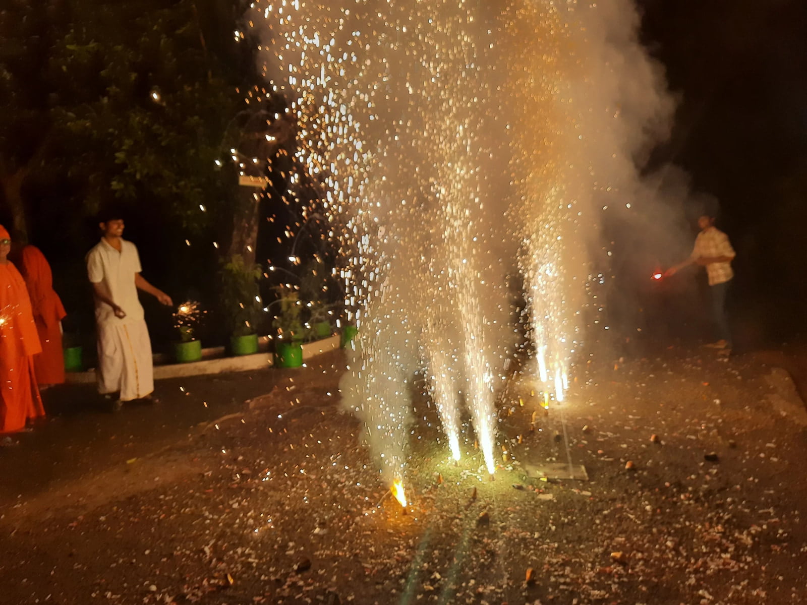 On October 31, 2024, Ramakrishna Math, Madurai, celebrated Deepavali and Sri Kali Puja with a deep sense of spirituality and joy. The celebration began with the evening Arati, followed by a special Sri Kali Puja dedicated to the fierce and compassionate form of the Divine Mother. Devotees gathered to chant bhajans and witness the special Arati and Pushpanjali offerings. The temple grounds glowed with lamps and lights, reflecting the festive spirit. Following the Puja, Prasadam was distributed to all attendees, and fireworks illuminated the night, symbolizing the victory of light over darkness.