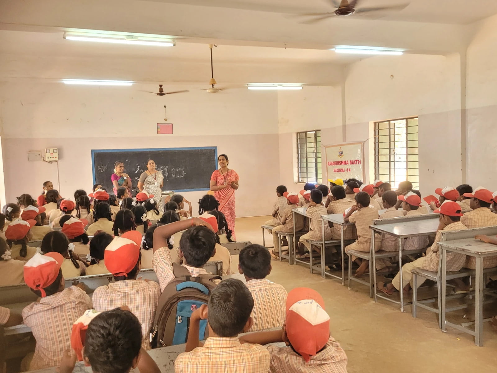 From February 12th to February 24th, 2024, Ramakrishna Math, Madurai, conducted a 12-day value education camp at Thampi Thottam Higher Secondary School. The camp was organized at the school's request to impart moral values to students from remote villages. Thampi Thottam Higher Secondary School is located in Dindigul district, approximately 60 km from Madurai Math.