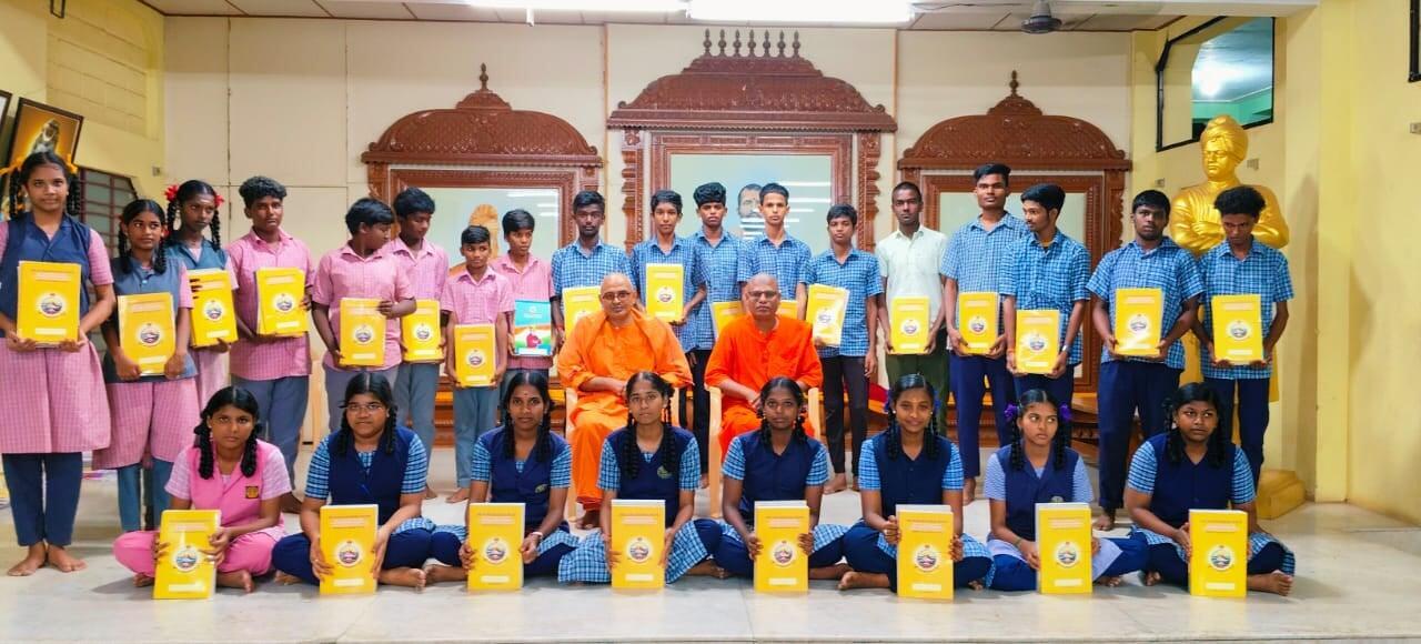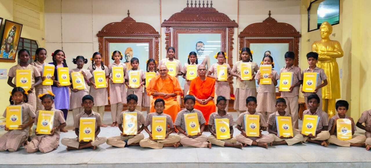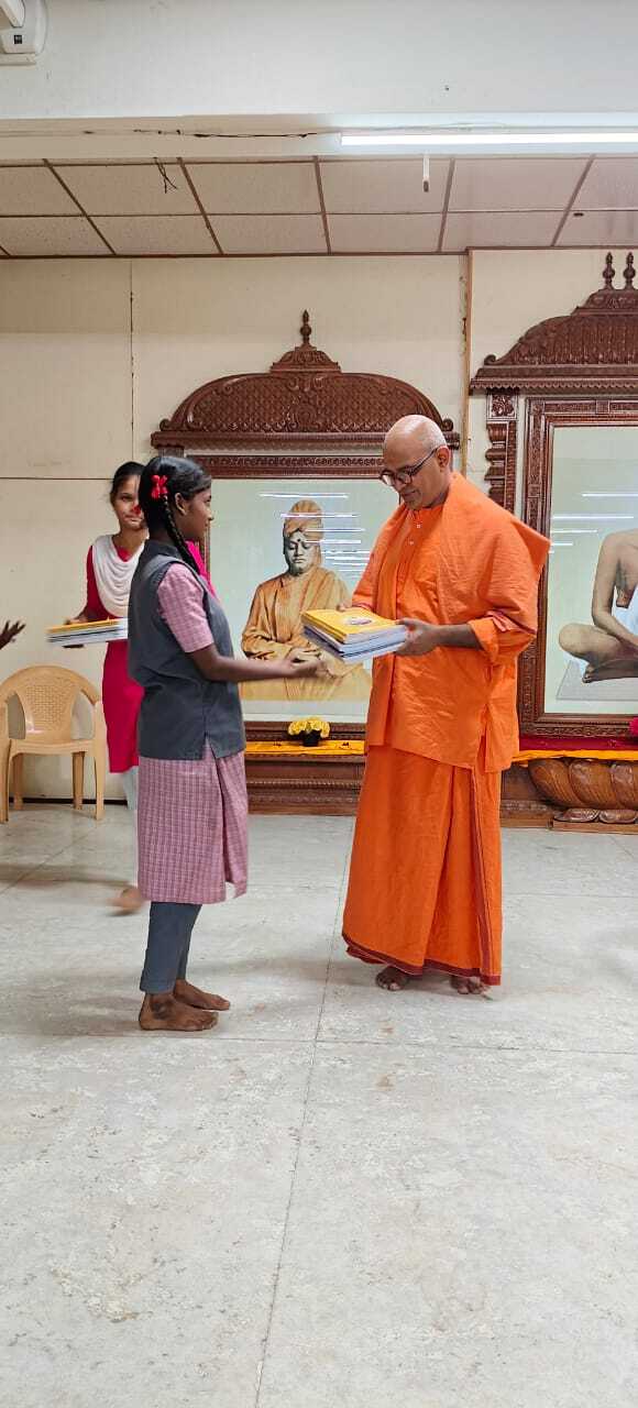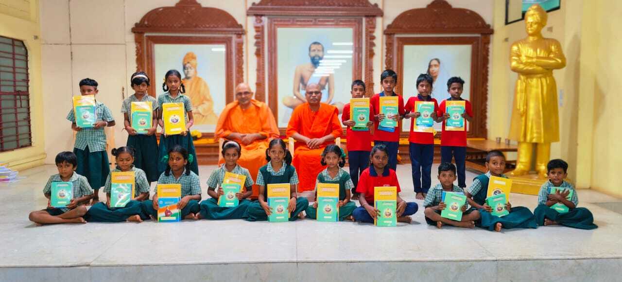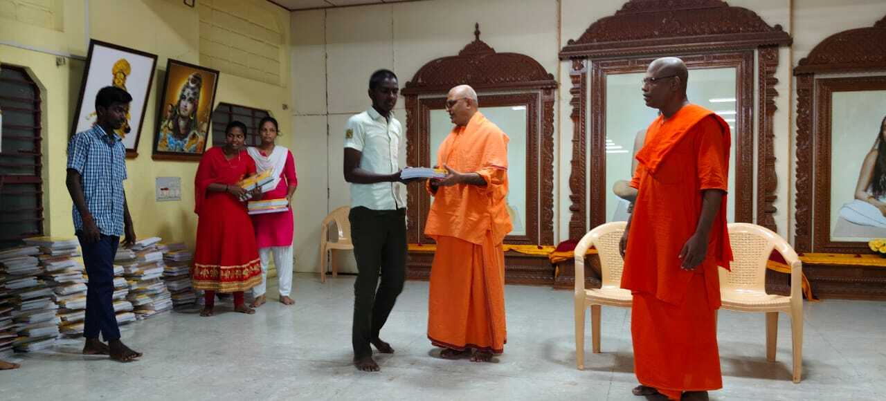 Ramakrishna Math, Madurai, conducted a Free Notebook Distribution Programme on 27th June 2025 at 7:30 PM. A total of 891 notebooks were distributed to 108 needy students enrolled in the Free Tuition Centre run by the Math.