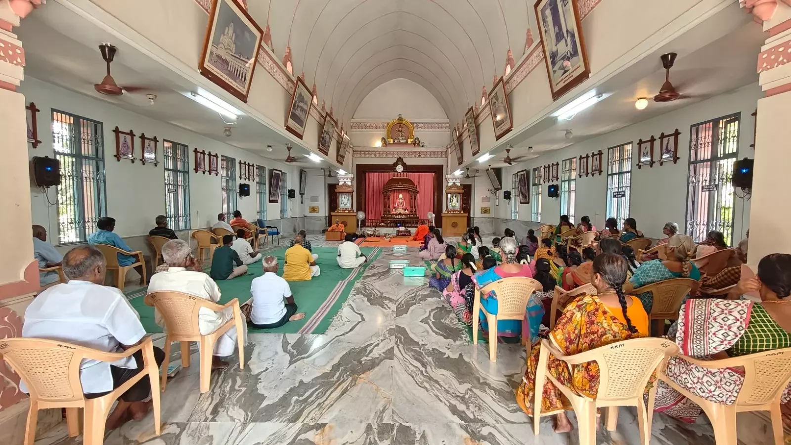 The morning was carefully structured into three intensive Japa and meditation sessions, beginning with a 45-minute practice at 9:30 AM. Between sessions, devotees were treated to inspiring readings from the life and spiritual discussions of Swami Brahmananda and the Gospel of Sri Ramakrishna (Tamil). After a short interval filled with devotional singing, the program reached its spiritual peak with a solemn Arati at 12:15 PM. The event concluded with Lunch Prasad, where approximately 335 devotees gathered to share a meal and carry home the peaceful vibrations of the day.