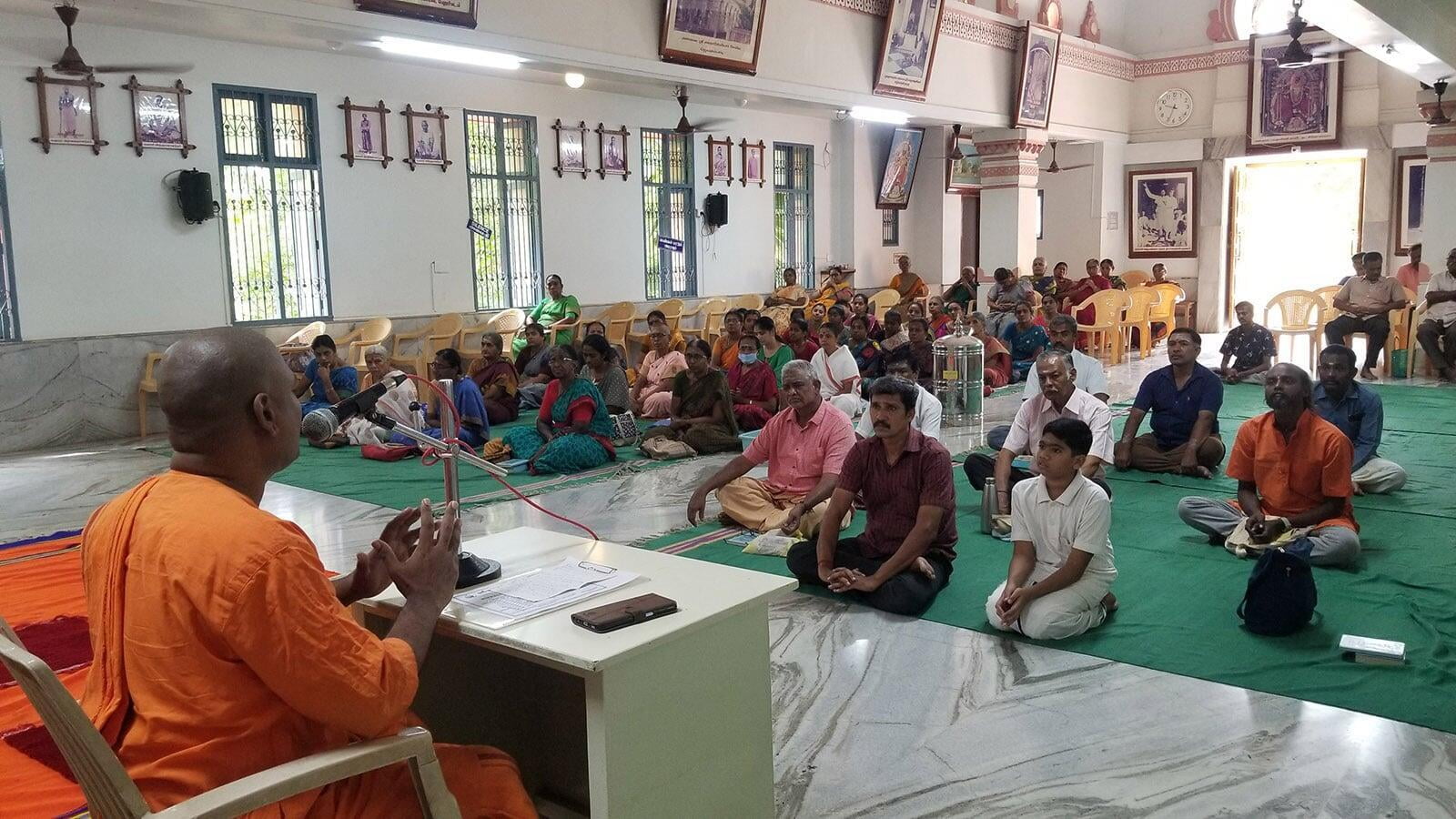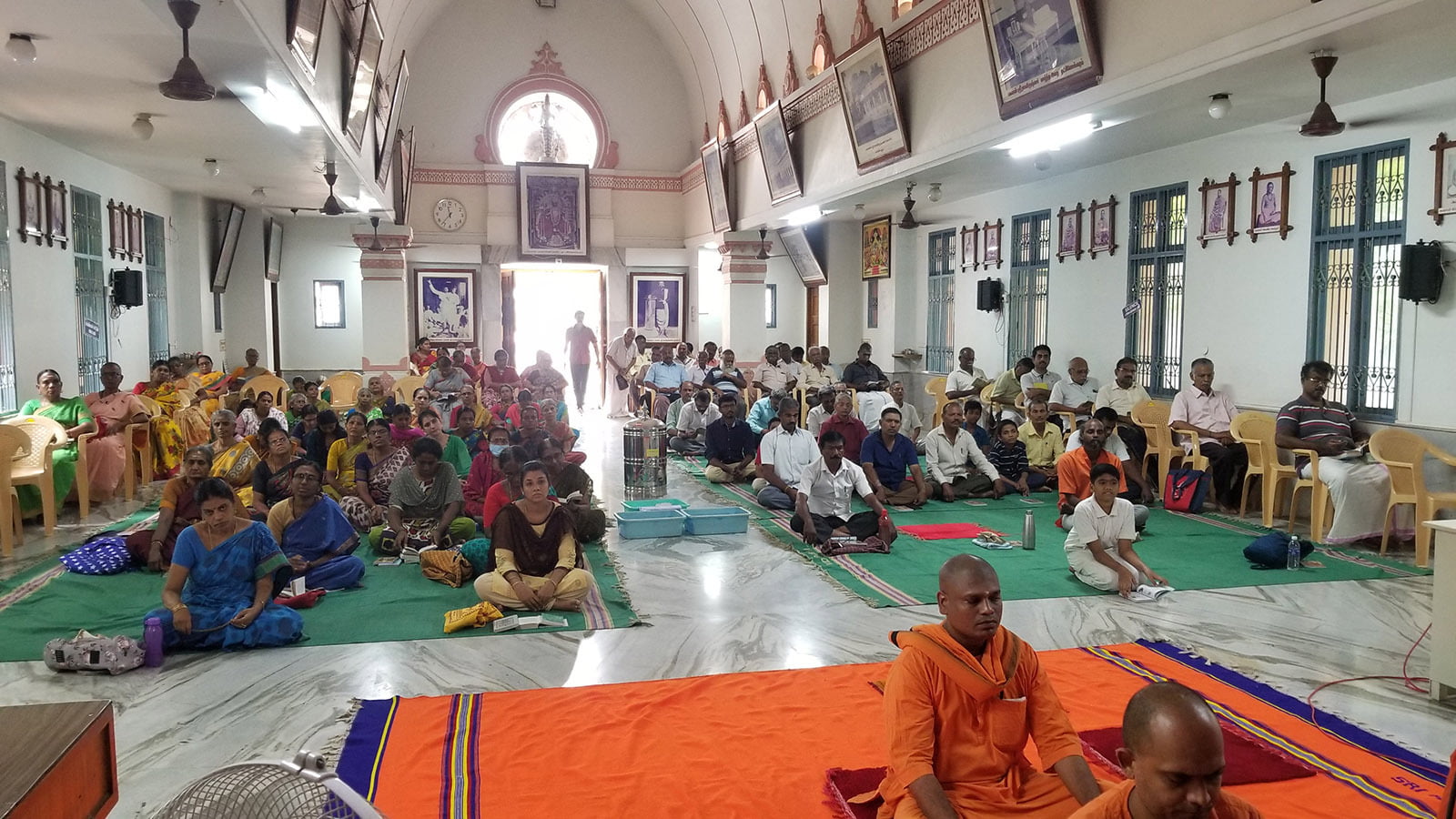 A special event named Nama Japa Yajnam was held at Ramakrishna Math Madurai on July 23, 2023. The pursuit of the gathering was to encourage the practice of Nama Japa, which involves repeating the name of God with devotion and focus. The event started at 9 am and lasted till 1 pm. It consisted of the following activities: