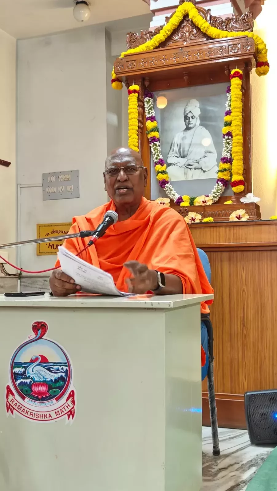 A special discourse was delivered at 11:15 AM by Revered Swami Sarvarupananda Maharaj. He dwelt upon the significance of Sri Ramakrishna’s act of supreme compassion, explaining the depth of the Kalpataru incident and its enduring relevance in our daily spiritual struggles.