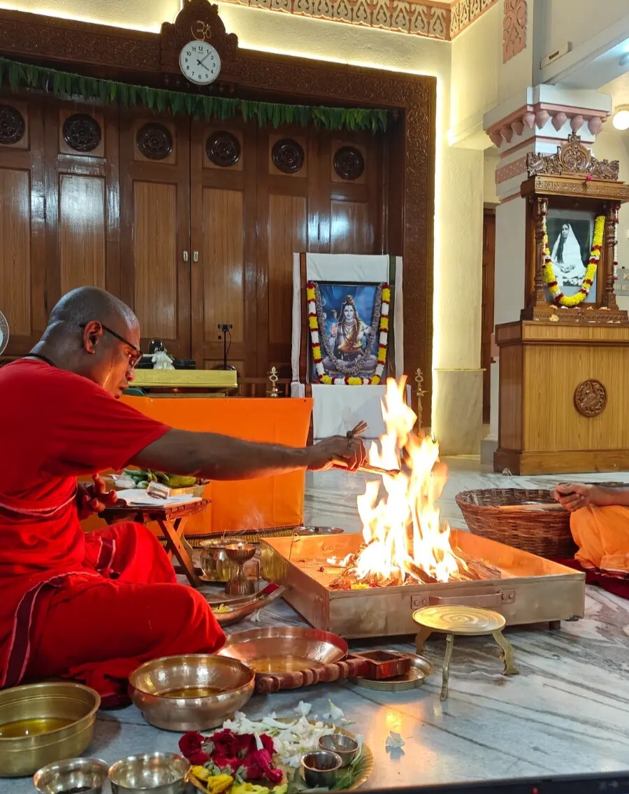 3:50 AM: Commencement of the early morning Homa (sacred fire ritual).