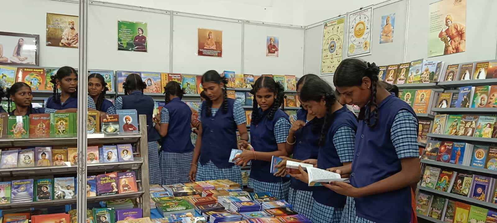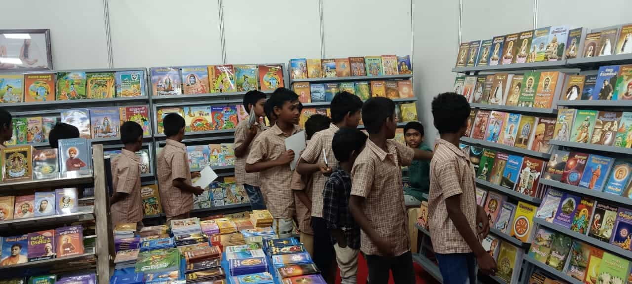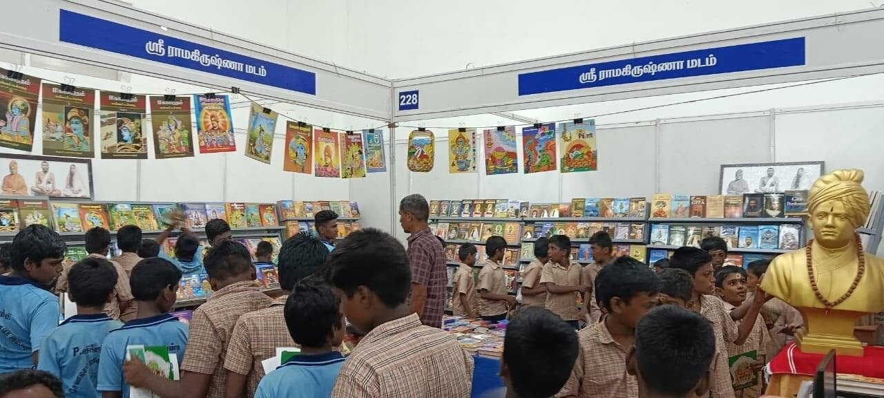 Ramakrishna Math, Madurai, participated in the annual Madurai Book Fair held at Tamukkam Ground. The 12-day event attracted over four lakh visitors, including 42,000 students from 700 schools, alongside book sellers and publishers.