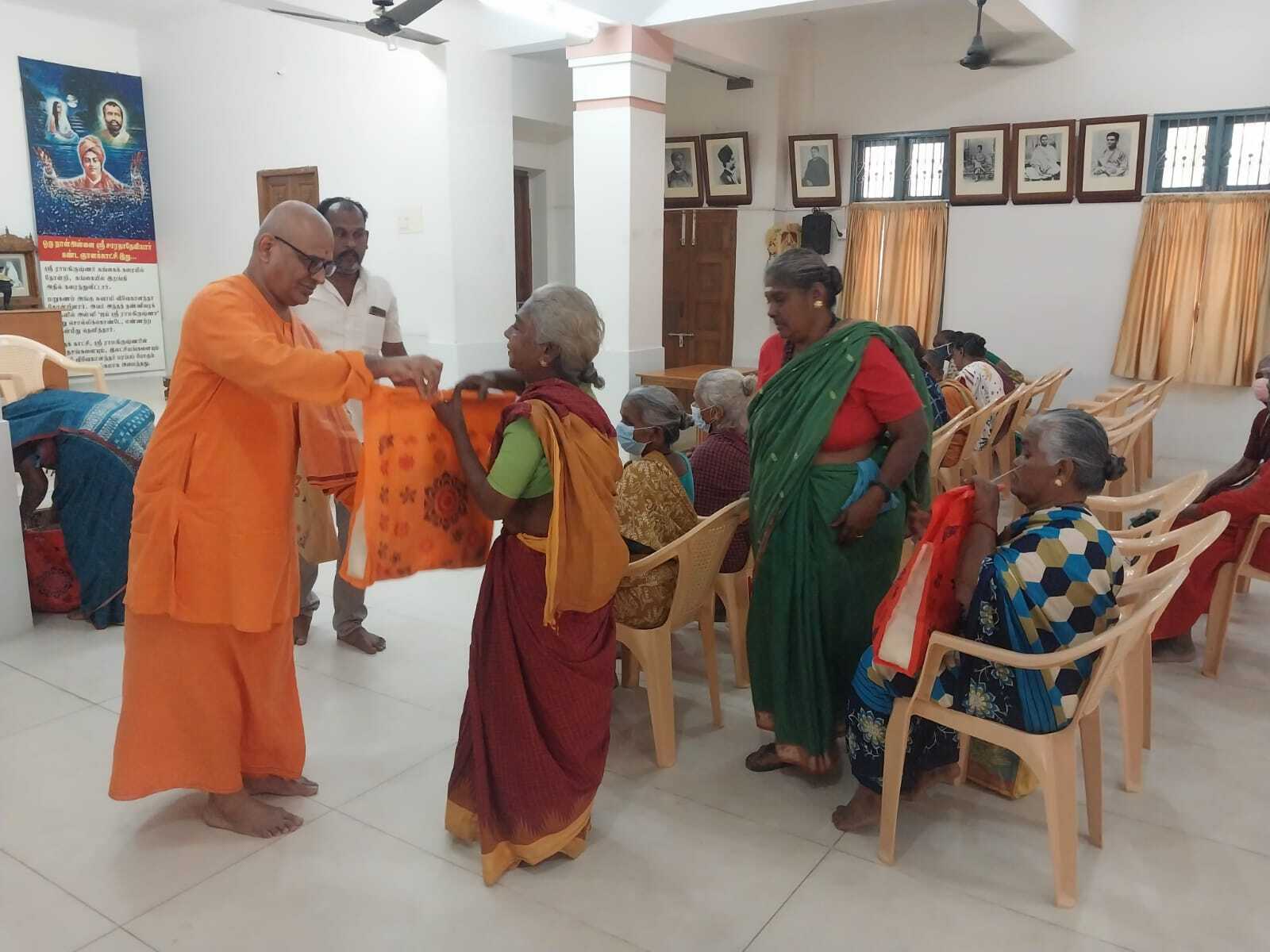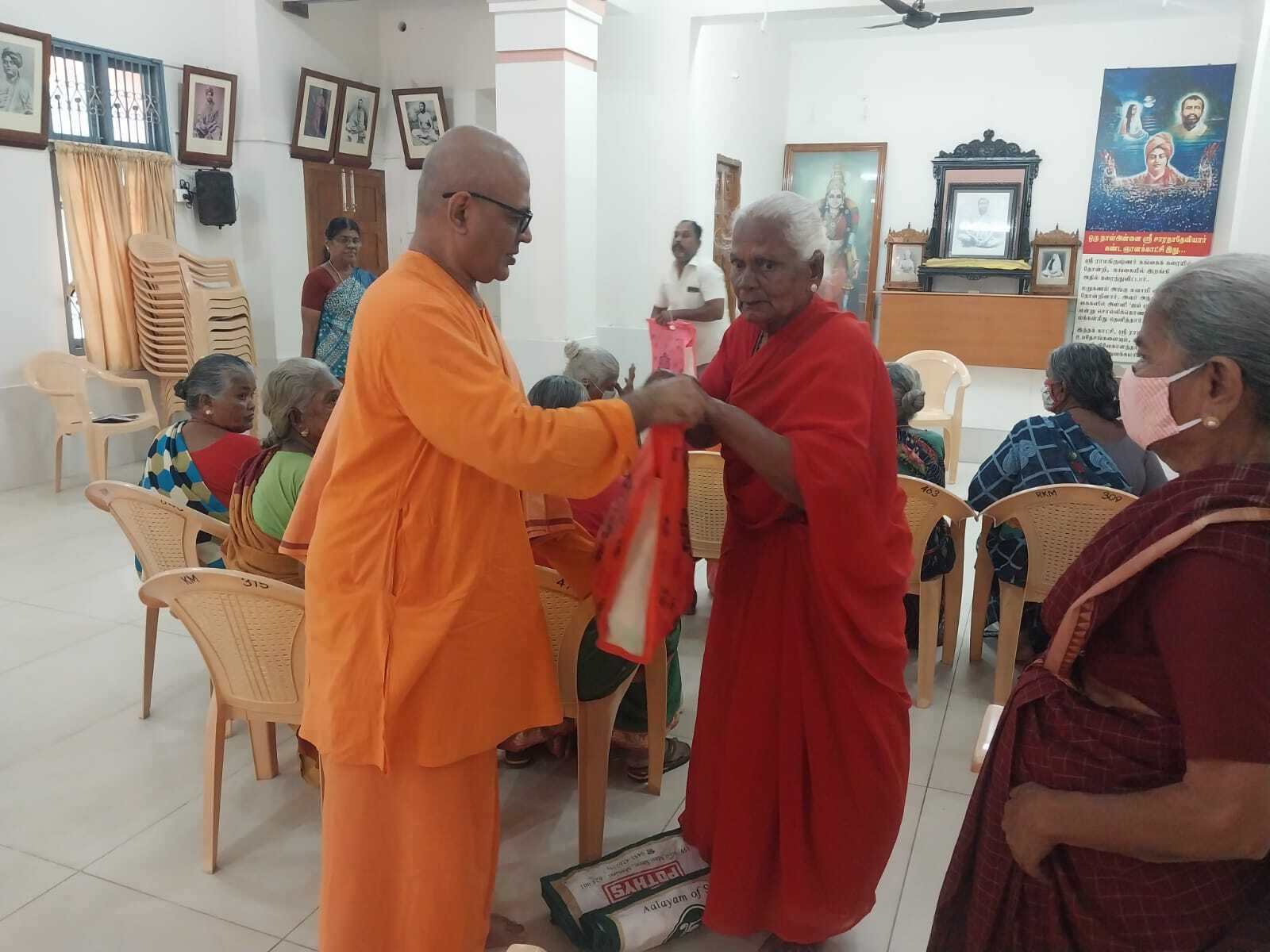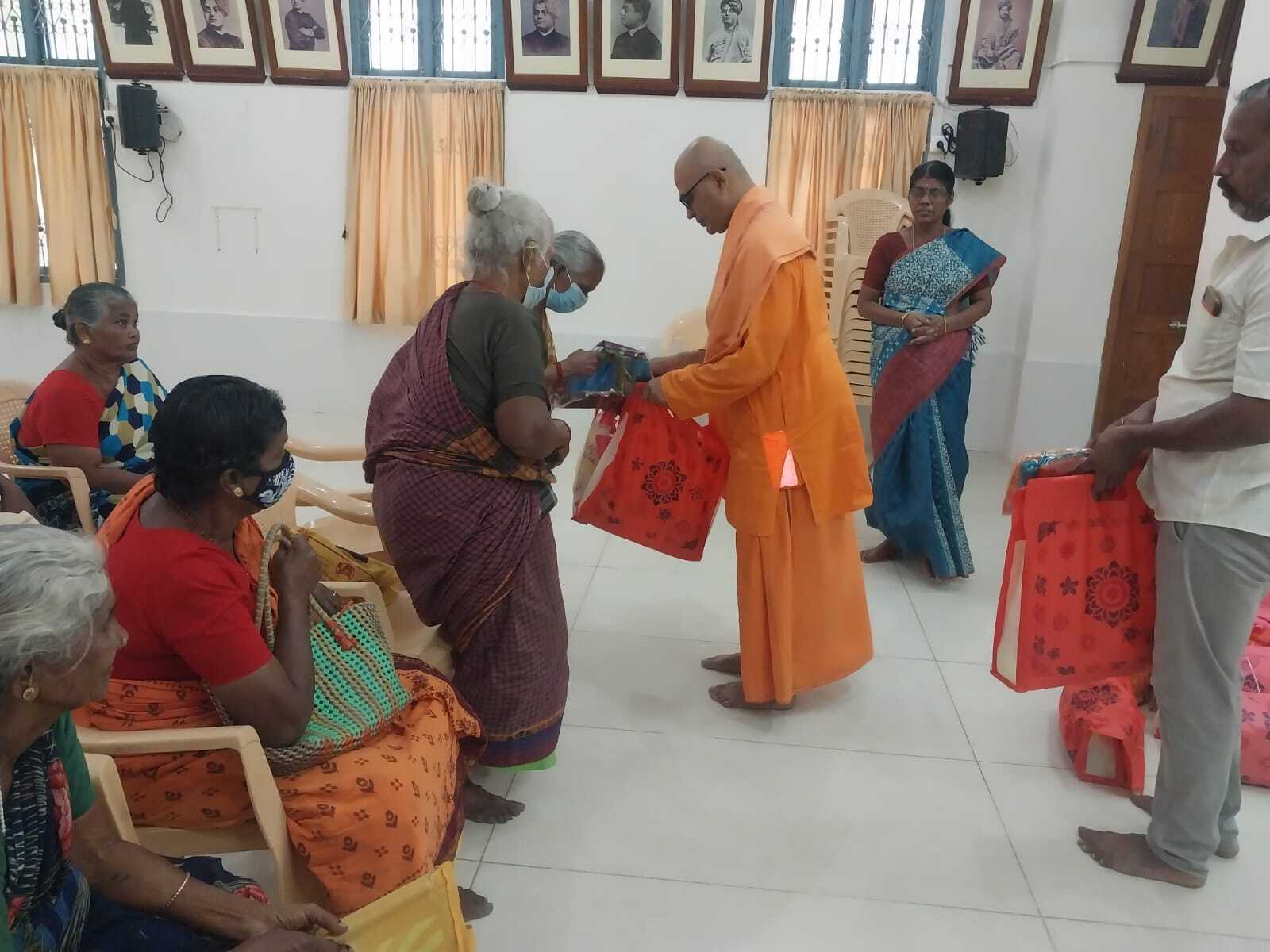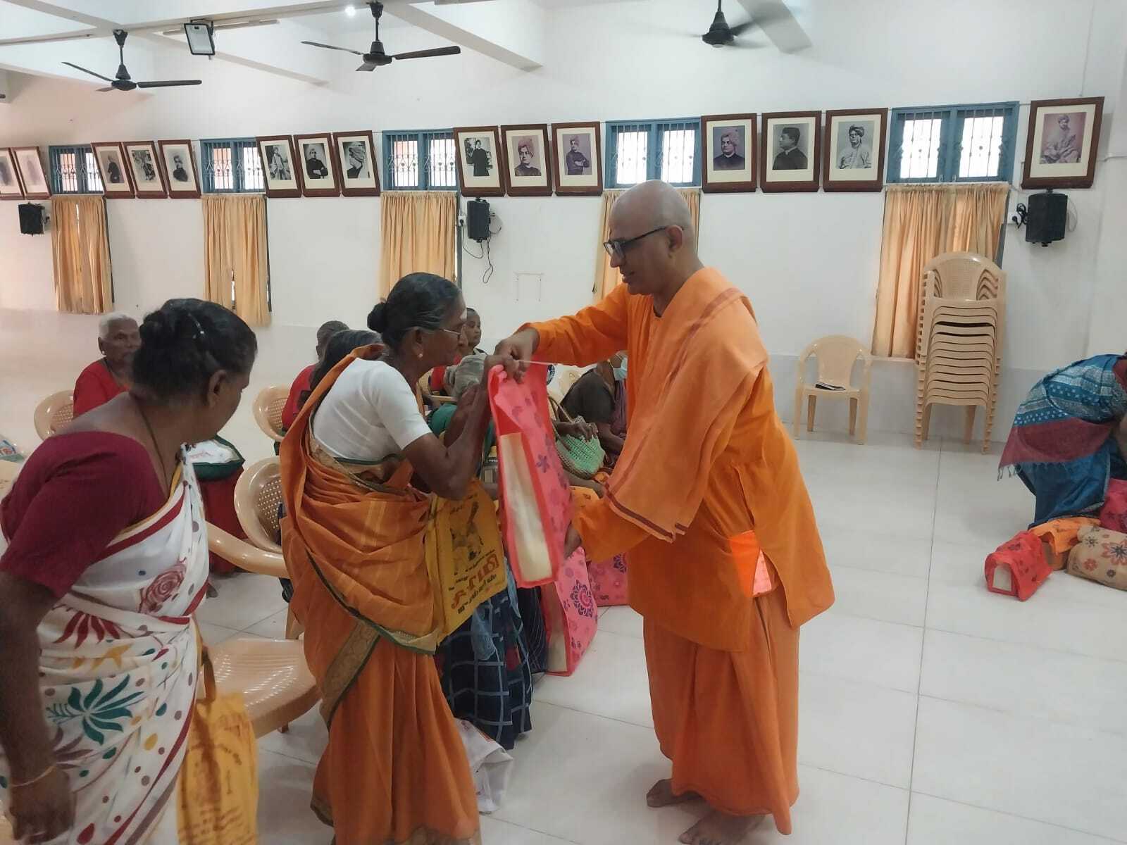 As part of the Jayanti observance of Holy Mother Sri Sarada Devi, Ramakrishna Math, Madurai, organized a service activity on January 28th, 2026. During this program, 21 sarees and ration kits were distributed to needy mothers, mainly selected from low-income patients who visit the Math’s charitable dispensary.