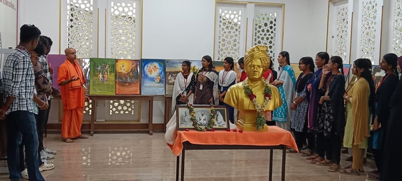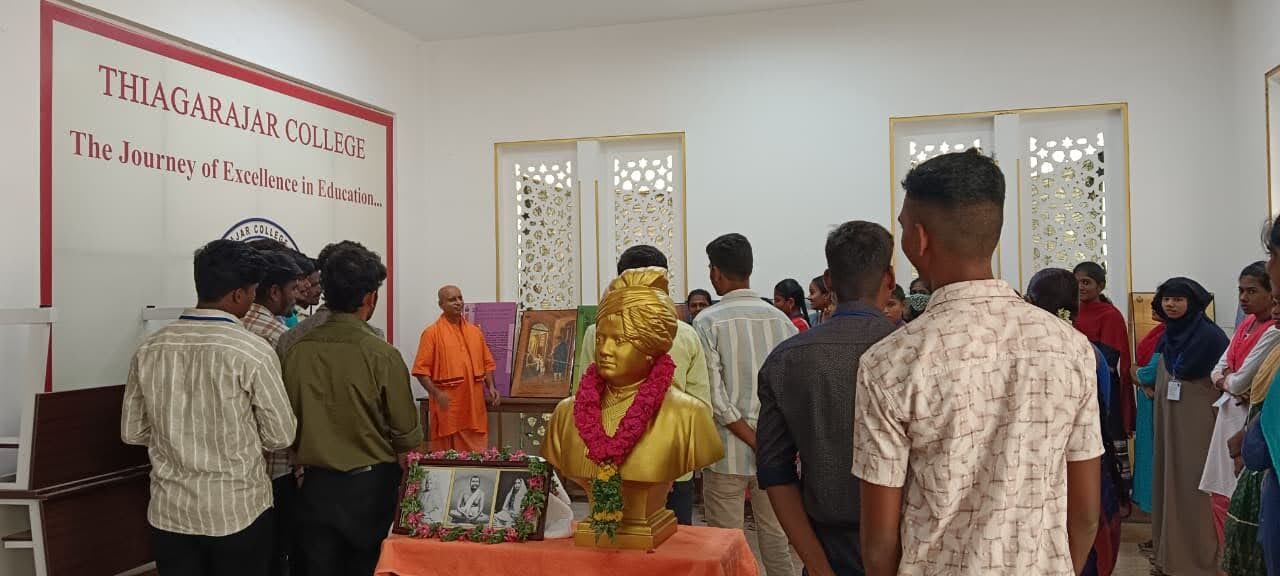 Ramakrishna Math, Madurai organized exhibitions on the Life of Swami Vivekananda at various colleges in Madurai during August 2025. The exhibitions showcased panels depicting inspiring incidents from Swamiji’s life and also featured a bookstall offering Ramakrishna–Vivekananda literature.