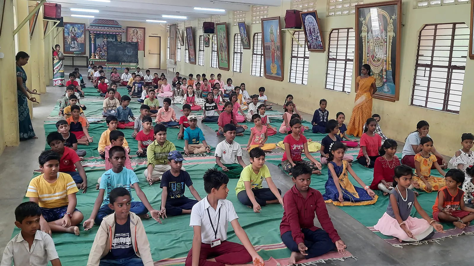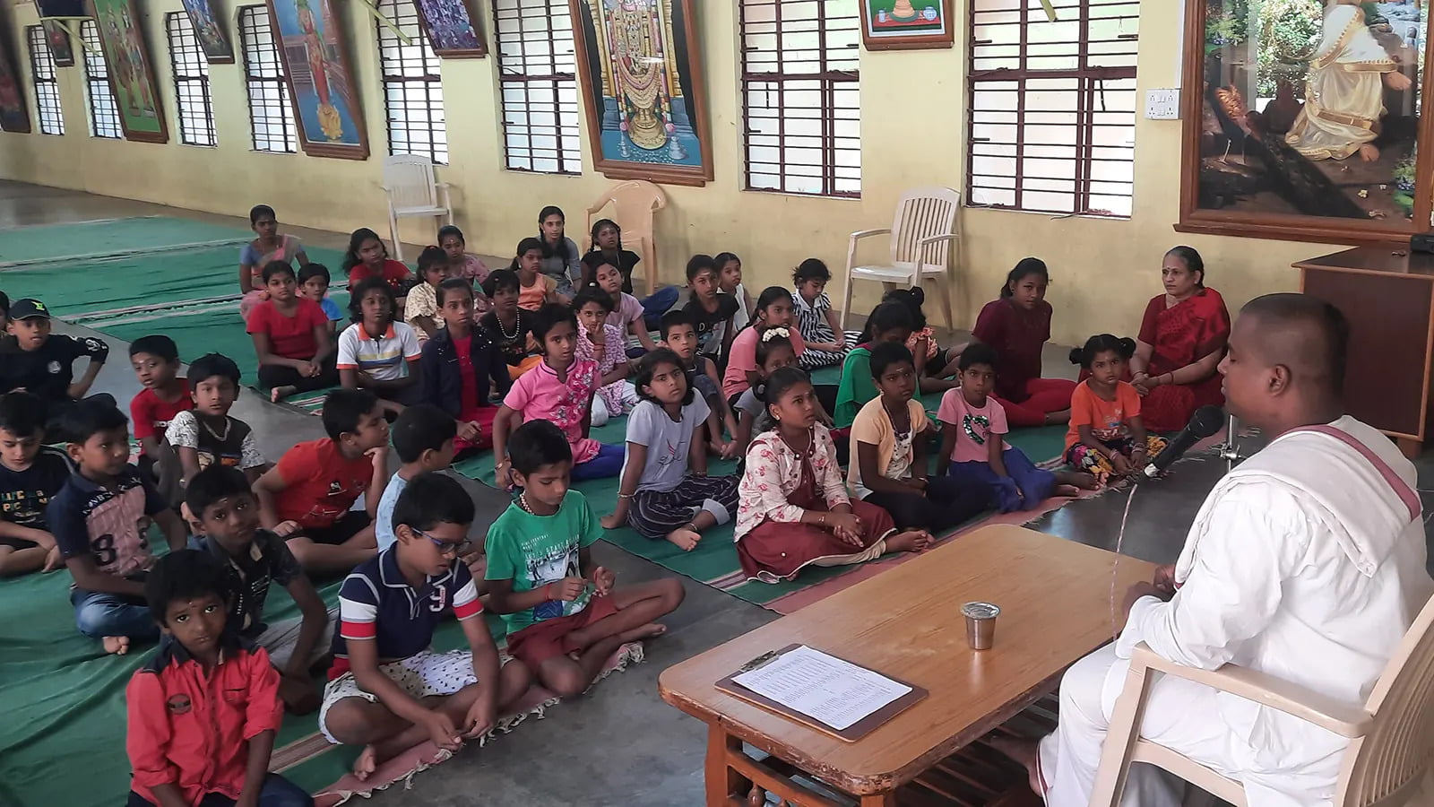 The classes were designed to impart essential life skills through various activities like Values class, Handicrafts, Yoga, Bhajans, Moral stories, and Film shows. It is worth mentioning that the Swamis and resource persons from our school handled the classes with utmost competence and dedication.