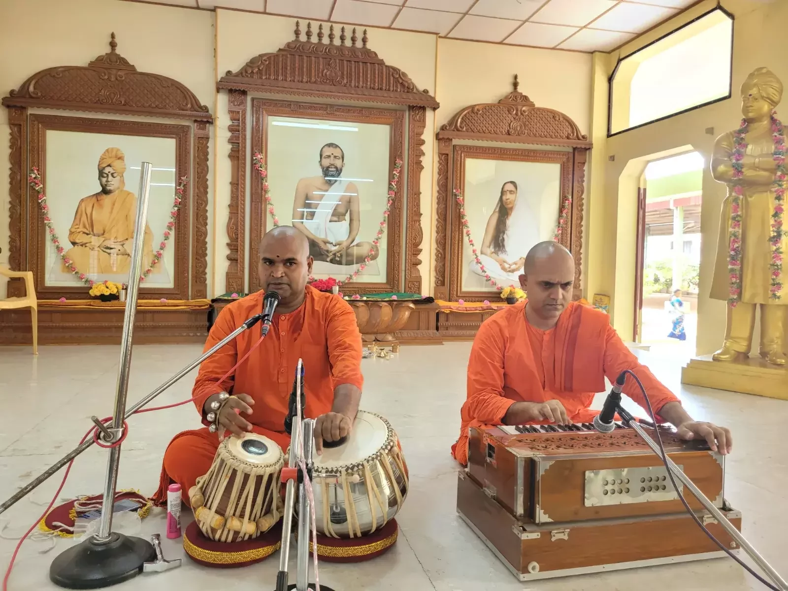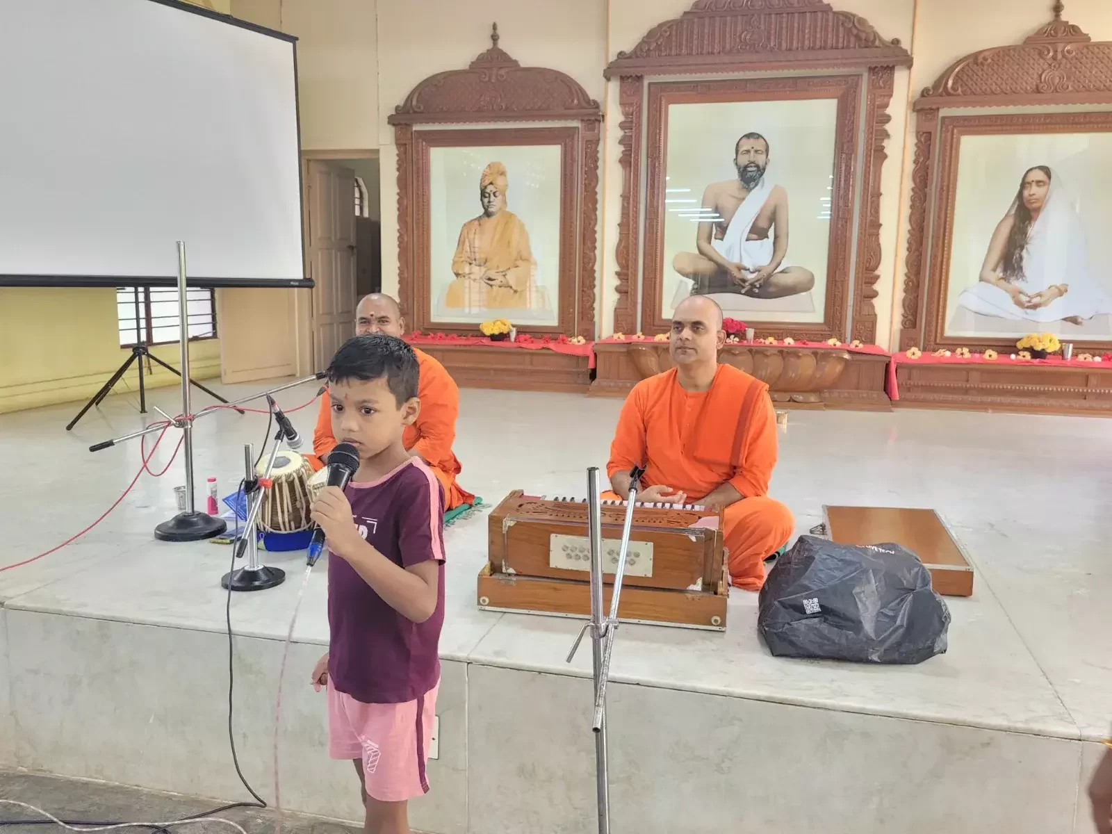 In the first session, Swami Mathrusevananda and Swami Gunarnavananda taught children devotional bhajans and slokas along with their meanings, helping them connect with spiritual practices.