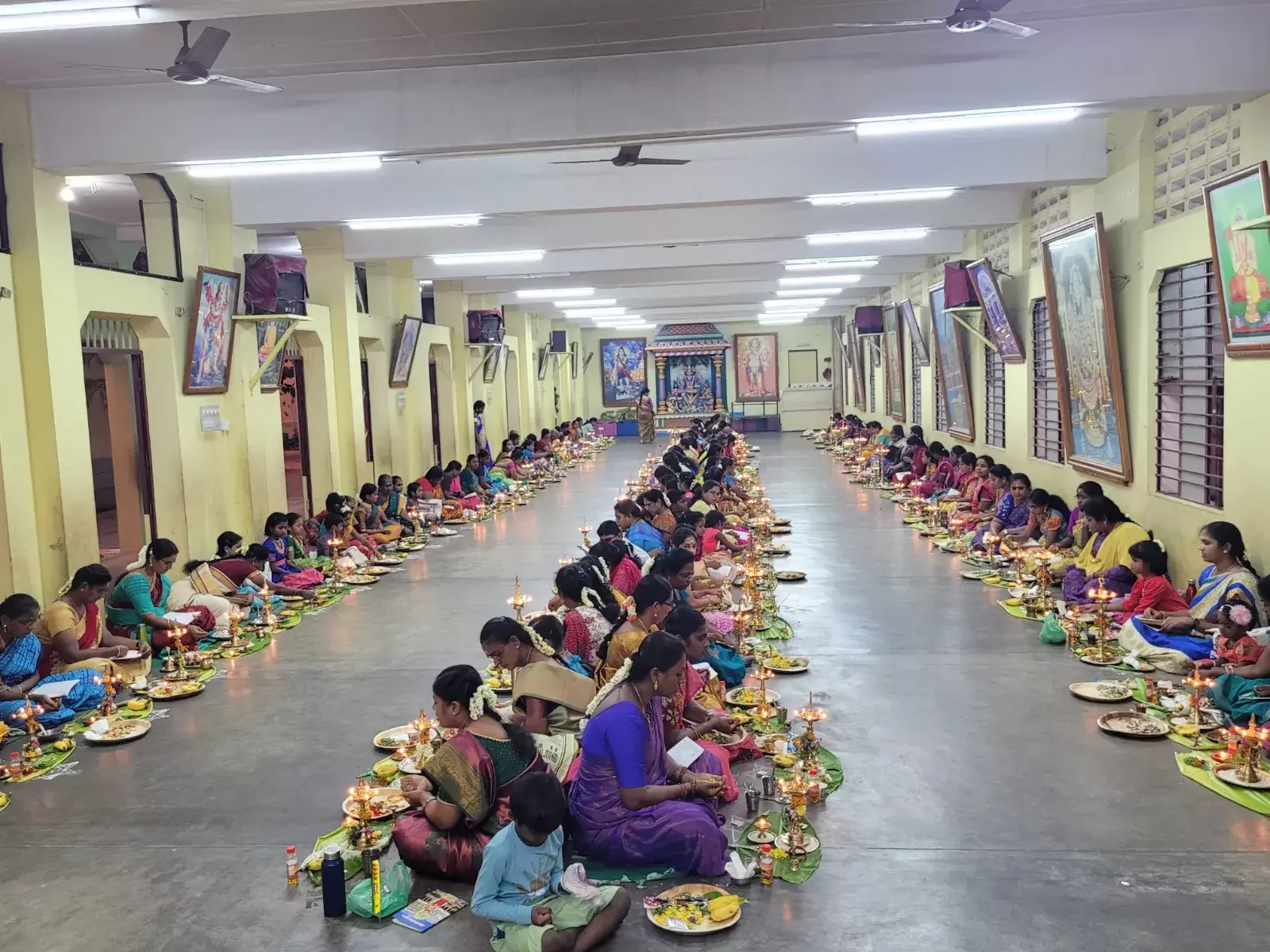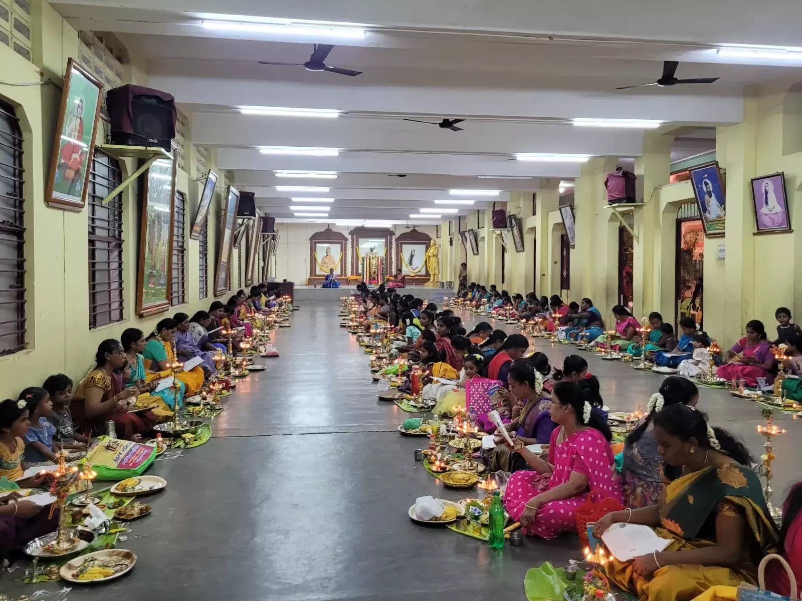 Ramakrishna Math Madurai conducted the Thiruvilakku Puja at Ramakrishna Math Sarada Vidyalaya on March 28, 2025, at 6:00 PM, with 142 participants, including devotees, parents, teachers, and students. This traditional lamp worship invokes the presence of the Divine Mother, symbolizing light and spiritual blessings, a cherished practice among women in Tamil Nadu.