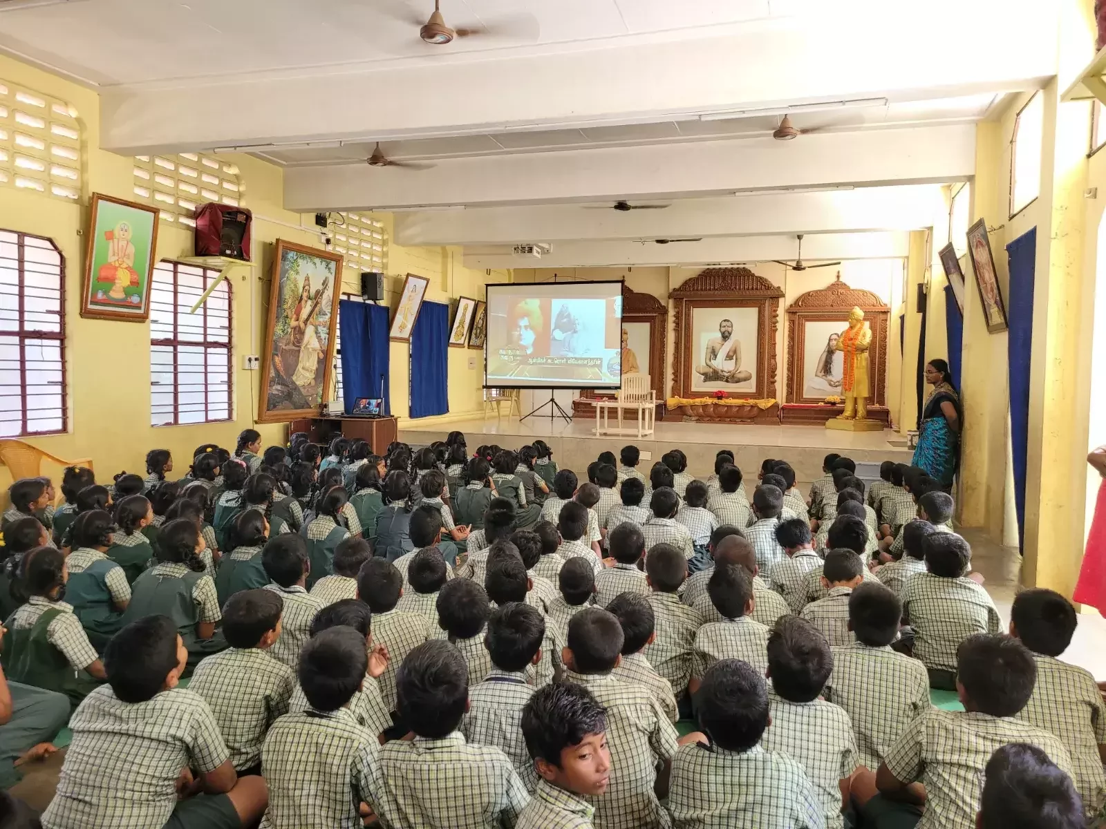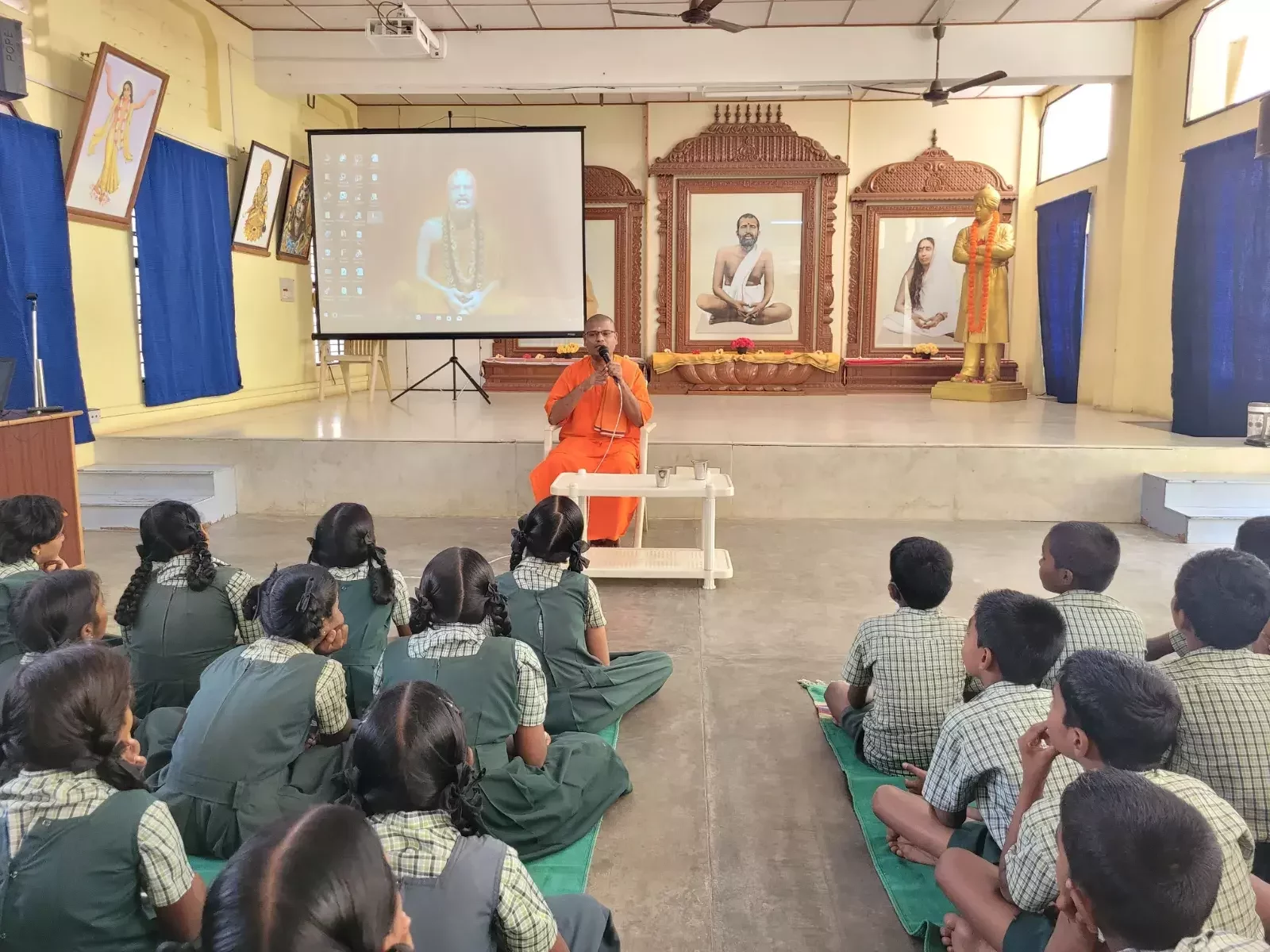 A teacher from our school led a joyful session on bhajans, encouraging the students to sing devotional songs with enthusiasm. Swami Arkaprabhananda of Madurai Math conducted an insightful session by narrating moral stories drawn from Indian tradition and the lives of great personalities.