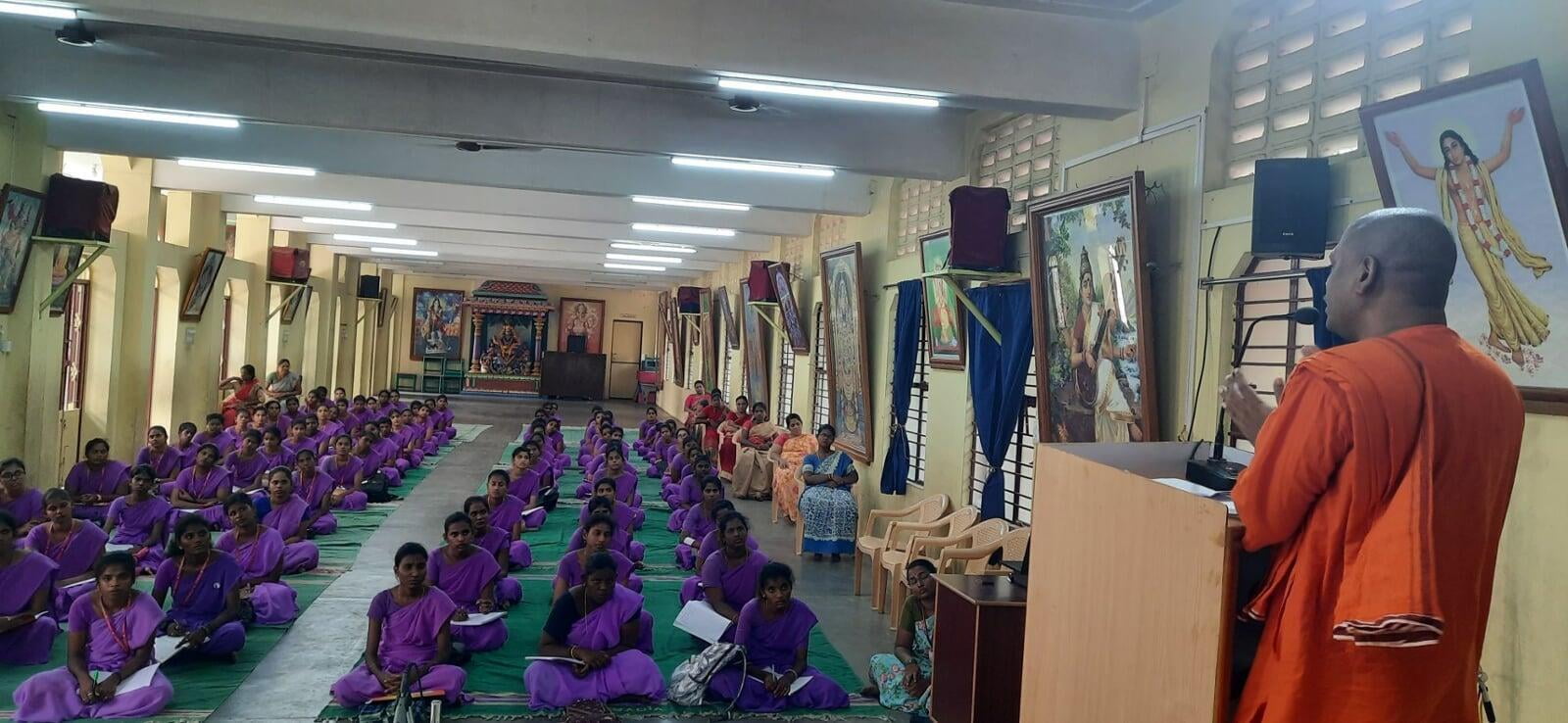 On August 2nd, 2023, Ramakrishna Math in Madurai hosted a youth camp for girls students. The program was presided over by Swami Kamalatmananda Maharaj, who addressed the students on the topics of values and personality development.